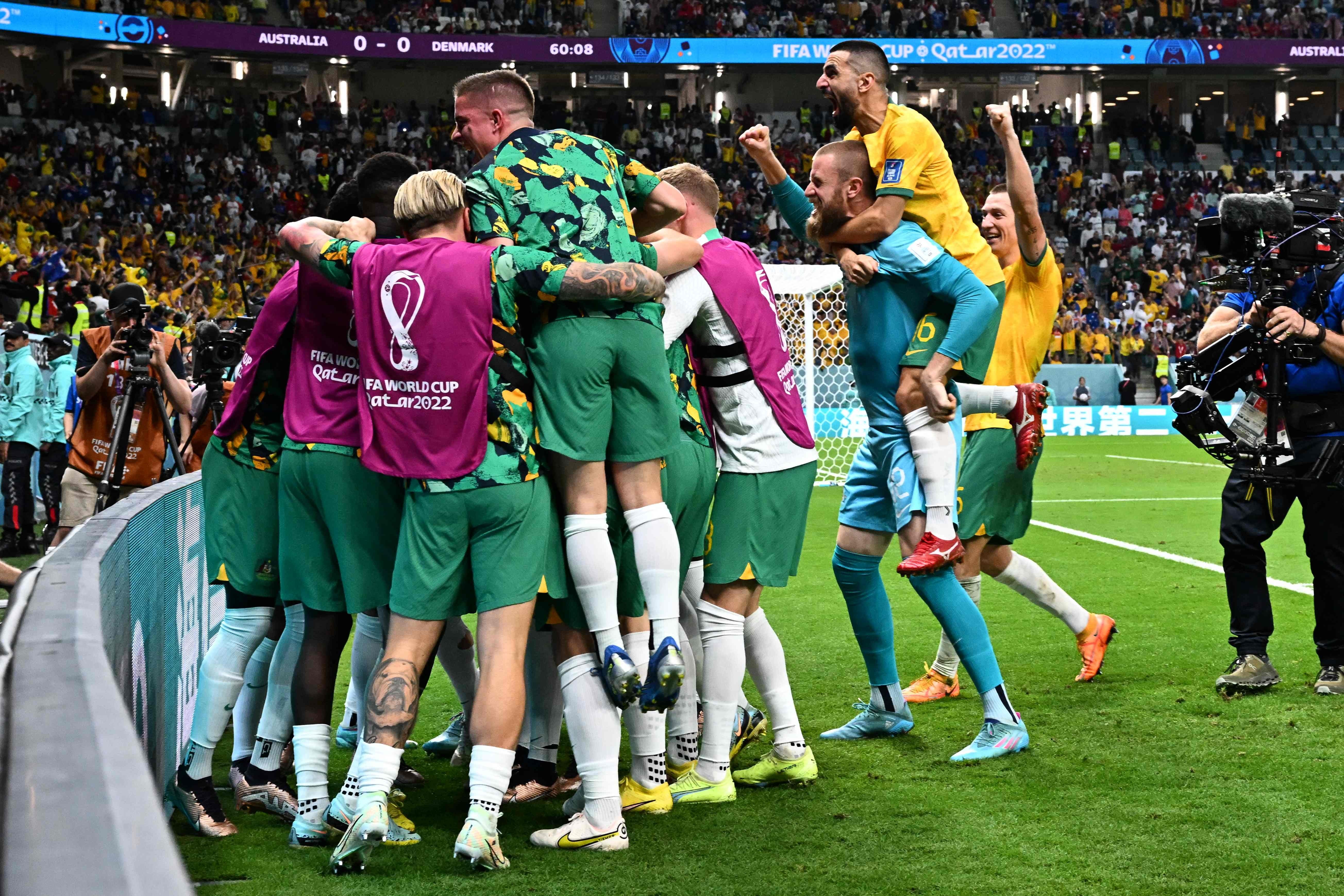 Mit einem 1:0 Sieg gegen Dänemark schafft Australien völlig überraschend den Einzug ins Achtelfinale. Frankreich ist nur aufgrund des besseren Torverhältnisses vor den Socceroos.