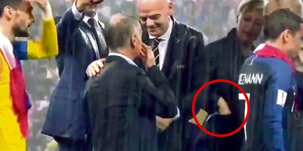 Nach dem WM-Finale wurden die Medaillen und der Weltmeister-Pokal überreicht. Bei der Zeremonie in Russland blieb allerdings ein Vorgang nicht unbemerkt. Als FIFA-Abteilungsleiterin Marion Mayer-Vorfelder bei Putin und Macron steht und ihnen die Medaillen für die Spieler reicht, lässt sie plötzlich eine davon in ihrer Jackentasche verschwinden.