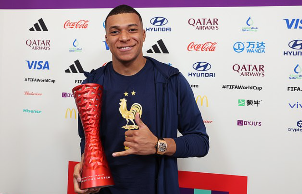 Mbappes Doppelpack im Achtelfinale gegen Polen, mit dem er Frankreich zum Sieg führte und das Viertelfinale gegen England sicherte, war bereits sein dritter Treffer bei der WM in Katar. Einen Aufreger gab es aber auch nach dem Spiel. Mbappe wurde bereits zum dritten im laufenden Turnier als "Spieles des Spiels" ausgezeichnet. Jedes Mal drehte er die Trophäe aber derart zur Seite, dass das Budweise-Sponsoring nicht zu sehen ist.