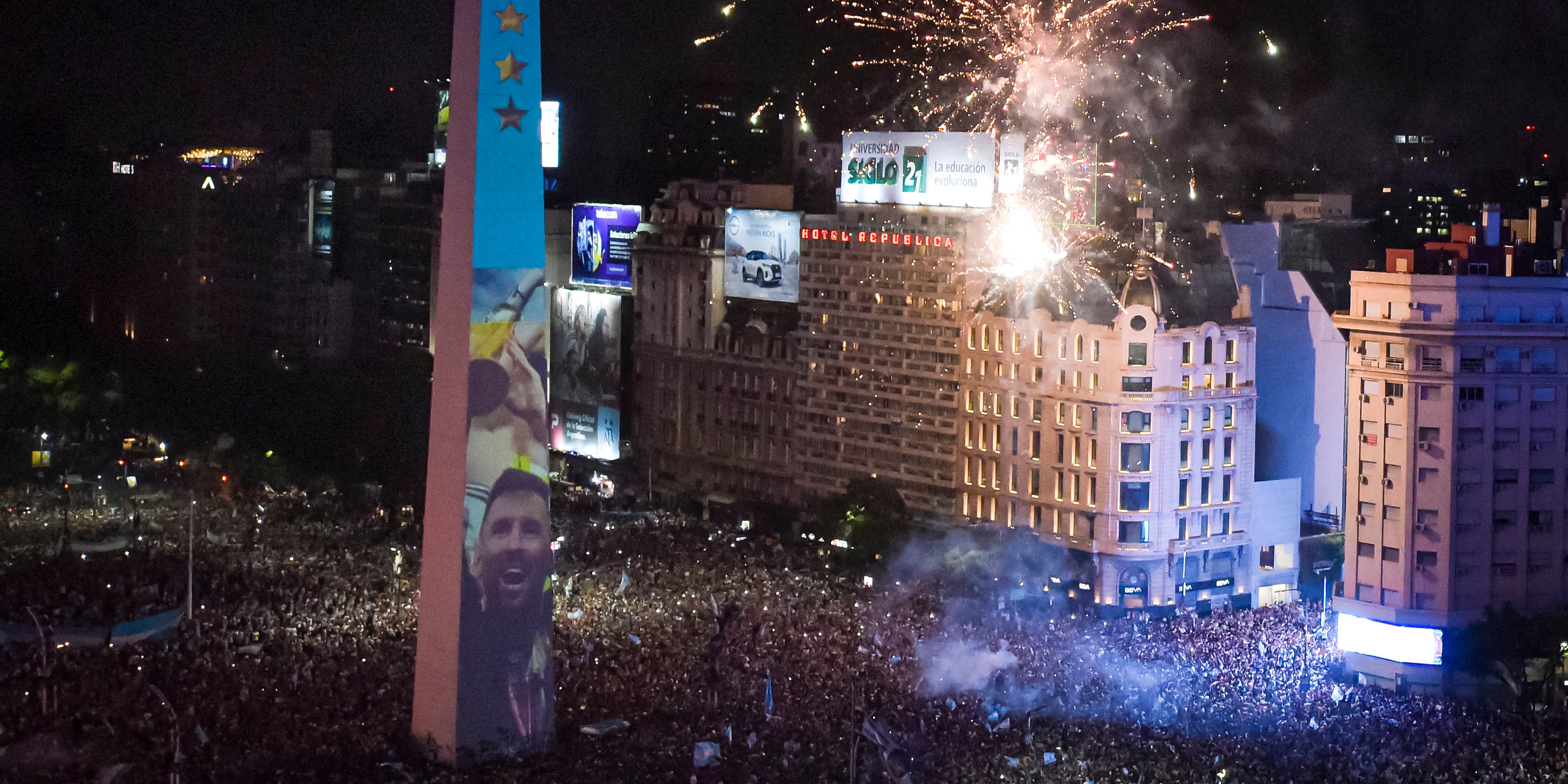 In Buenos Aires versammelten sich die Fans in den himmelblau und weiß gestreiften Trikots der "Albiceleste", mit Argentinien-Fahnen und Kopfbedeckungen in Massen um den Obelisken im Zentrum der Stadt. Sie kamen unter anderem mit der Metro, die sie mit Gesängen und fröhlichem Hüpfen in eine Partyzone verwandelten, oder veranstalteten bei der Anfahrt mit dem eigenen Fahrzeug Hupkonzerte.