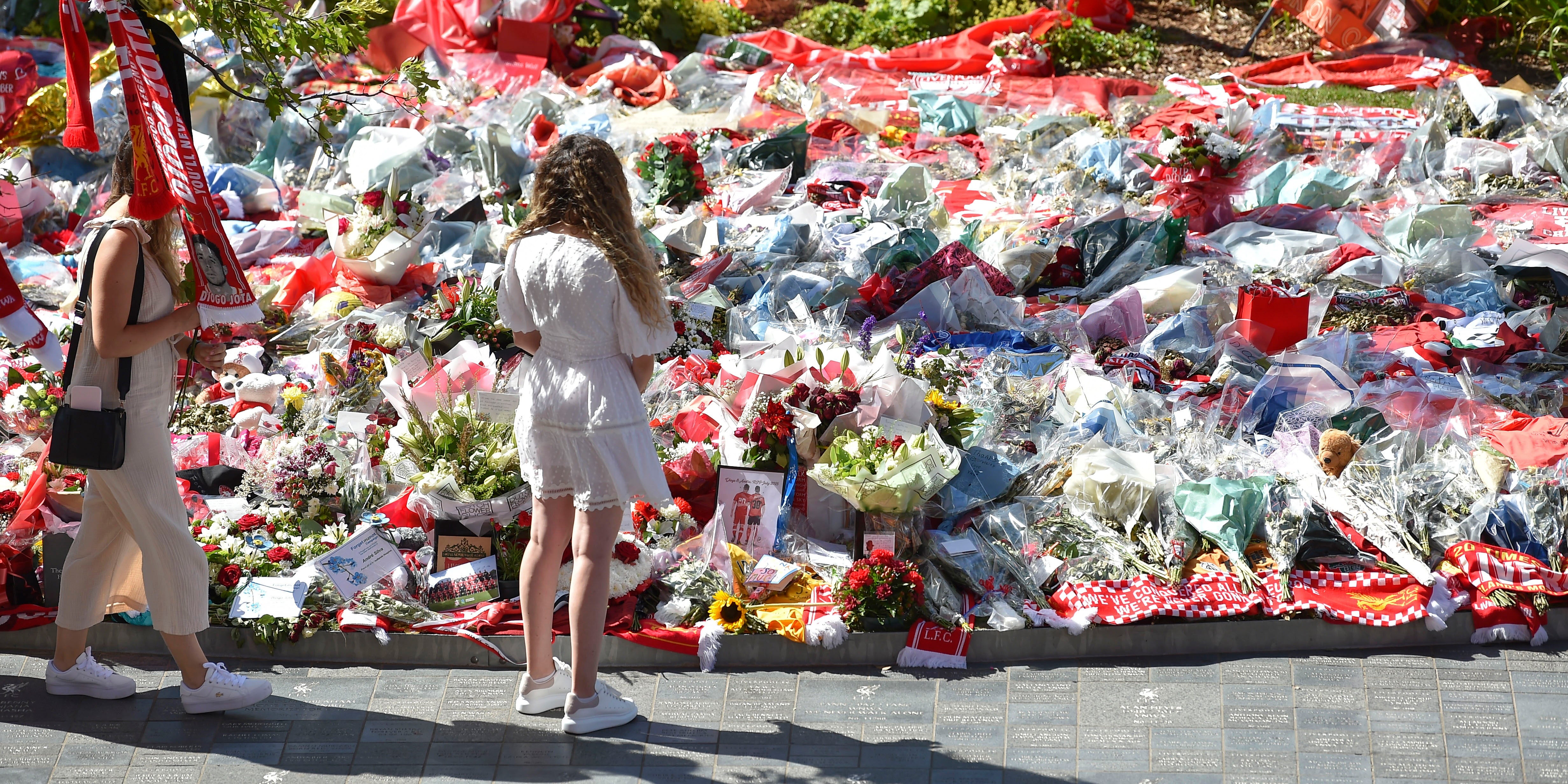 Vor der "Kop"-Tribüne haben Fans aus aller Welt einen emotionalen Gedenkort errichtet, mit roten Trikots, Blumen und Kerzen. Cardoso reiste aus Portugal an, nur wenige Tage nach der bewegenden Beerdigung in Porto, bei der sie unter Tränen dem Sarg ihres Mannes folgte.