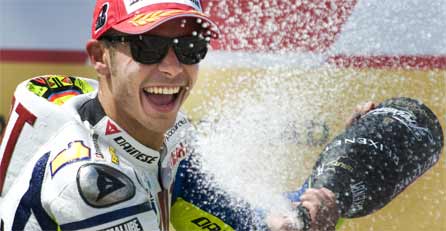 Dank seines 159. Podestplatzes zog Rossi mit seinem legendären Landsmann Giacomo Agostini gleich. Für den Triumph musste "Il dottore" hart arbeiten. Wie schon beim Grand Prix von Barcelona Mitte Juni lieferte sich Rossi im Finish ein Kopf-an-Kopf-Duell mit Lorenzo, den er in der vorletzten Runde überholte und in der Folge erfolgreich abwehrte. Im Ziel hatte der 30-Jährige dann auch nur 99 hundertstel Sekunden Vorsprung auf den Spanier. In der WM-Wertung baute Rossi den Vorsprung auf Lorenzo auf 15 Punkte aus.