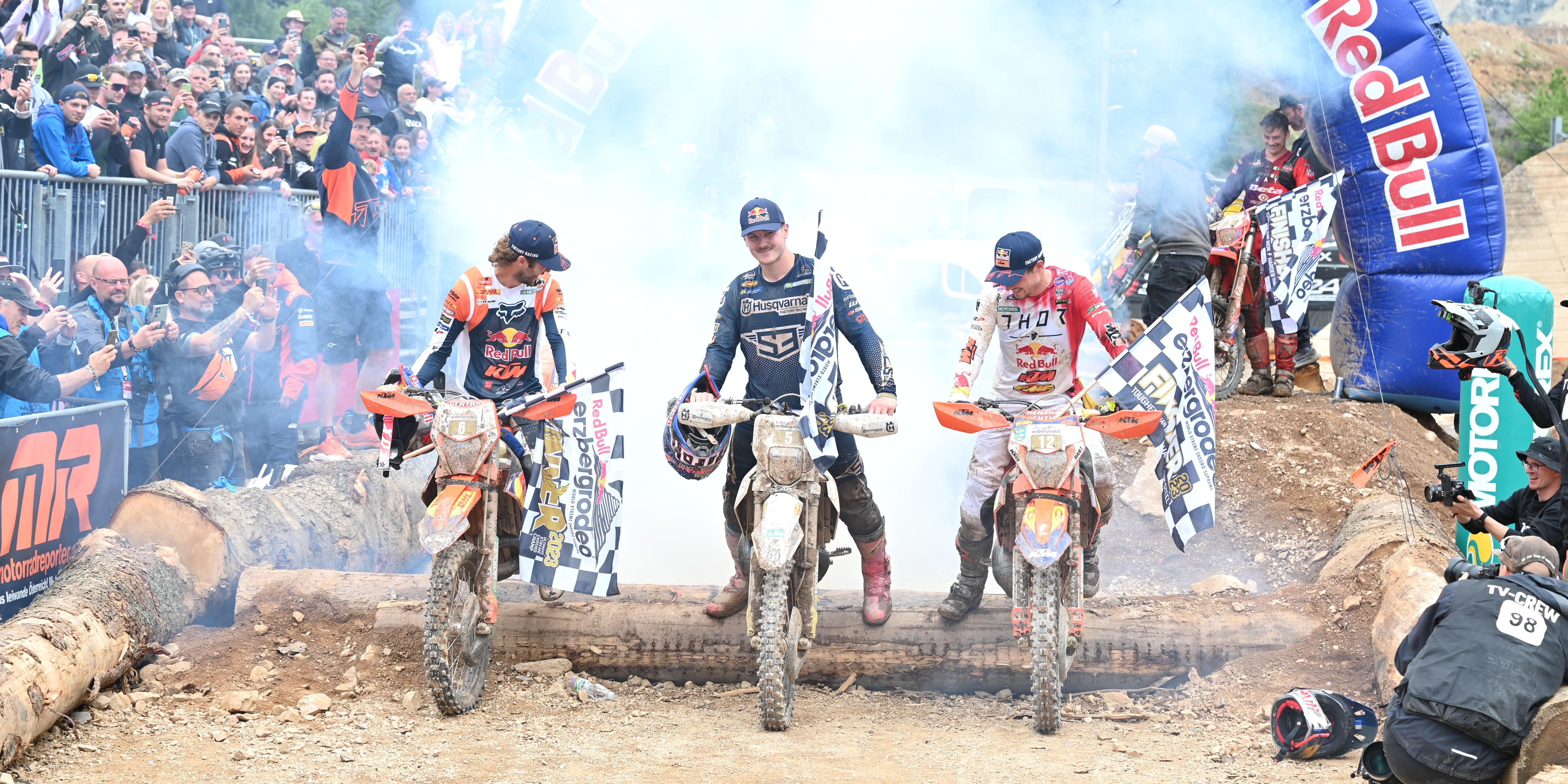 Der deutsche KTM-Pilot setzte sich am Sonntag im berühmt-berüchtigten Hare Scramble in der Steiermark in 2:31:15 Stunden etwa zehn Minuten vor dem Briten Billy Bolt (Husqvarna) durch. Österreichs heißestes Eisen, Michael Walkner, landete unter 17 "Finishern" auf dem siebenten Platz.