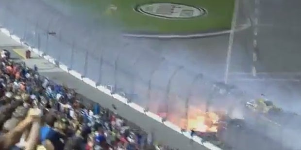 Albtraum-Crash beim Sprintrennen am legendären Oval-Kurs von Daytona. Austin Dillon war mit seinem Boliden in der letzten Runde in die Fangzäune geflogen und aufs Dach geschleudert worden. Der Bolide fing Feuer, dann krachte auch noch ein Konkurrent in das Auto.
