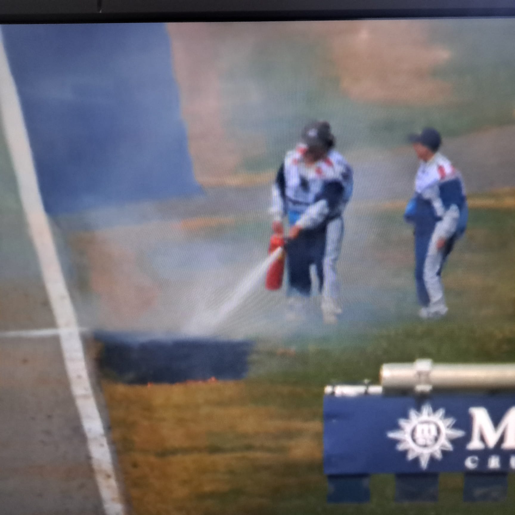 Die Wiese fing Feuer, nachdem Lewis Hamilton mit seinem Ferrari vom Asphalt abkam.
