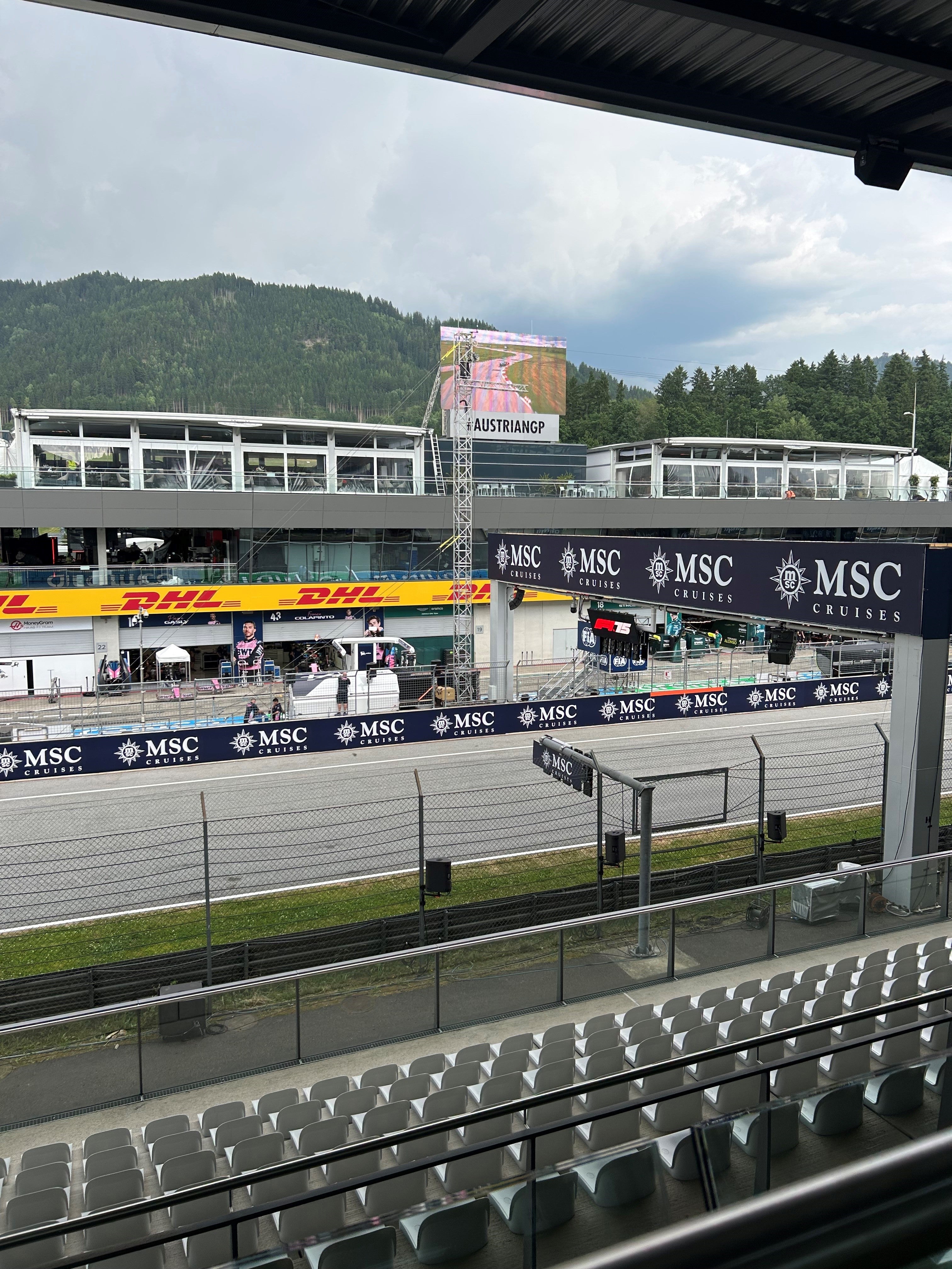 Während ich bei den Pressekonferenzen mit Max Verstappen, Isack Hadjar und Pierre Gasly, sowie Oscar Piastri, Esteban Ocon und Gabriel Bortoletto drinnen in Sicherheit war, begann draußen das Wetter verrückt zu spielen. Wo zuvor noch die Sonne regelrecht herunterbrannte, prasselten nun Regen und Hagel auf den Boden in Spielberg.