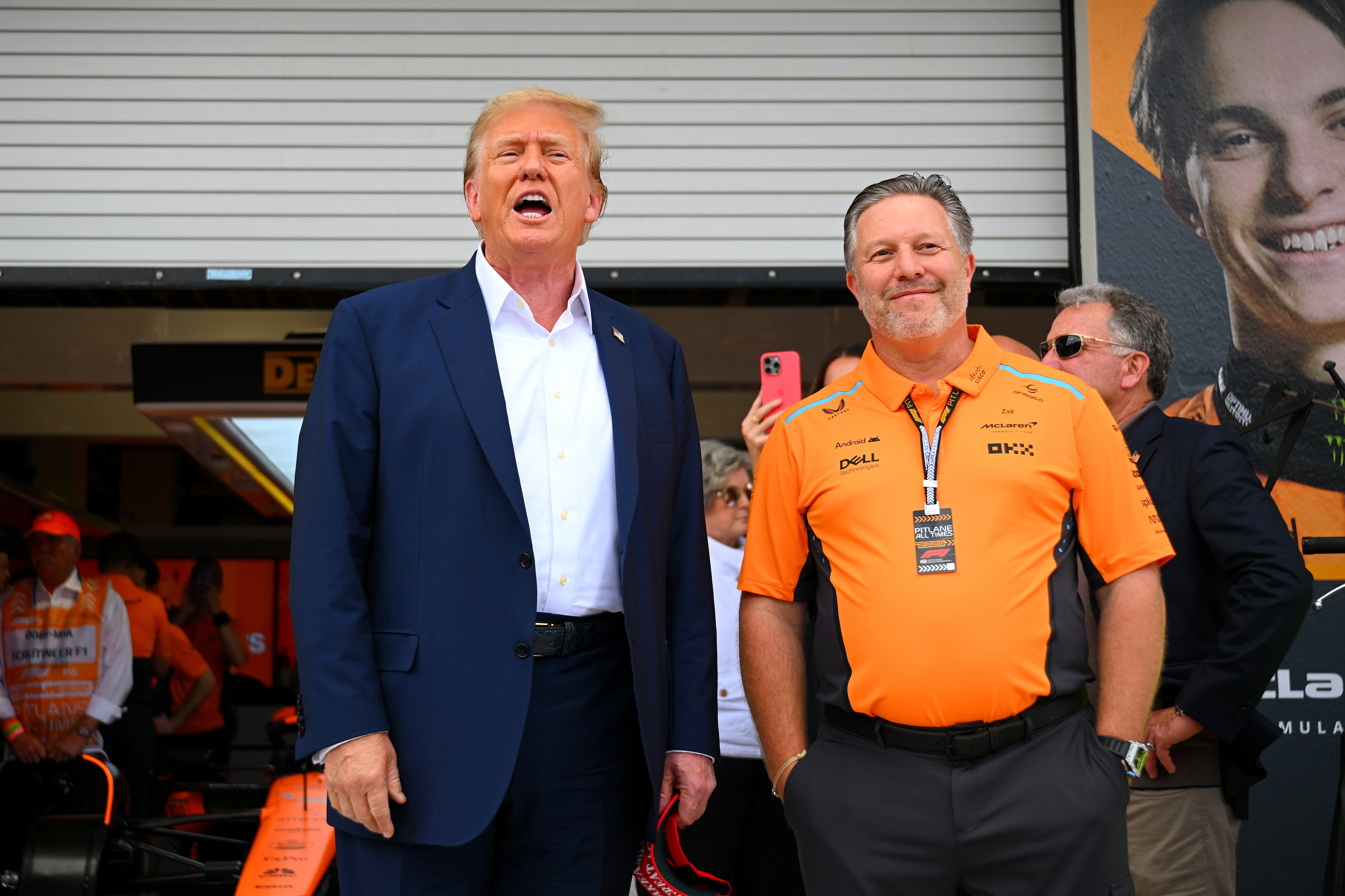Die Loge allein reichte Trump aber offenbar nicht, da er sich offenbar selbst zu McLaren einlud. Das Team gehört der Bahrain Mumtalakat Holding Company, also dem Staatsfonds des Königreichs Bahrain. Diese pflegen gute Beziehung zu den USA. Teamchef Zac Brown gab dem Ex-Präsidenten eine kleine Tour durch die McLaren-Garage.