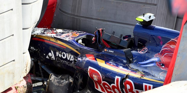 Toro-Rosso-Fahrer Carlos Sainz krachte heftig in die Streckenbegrenzung.