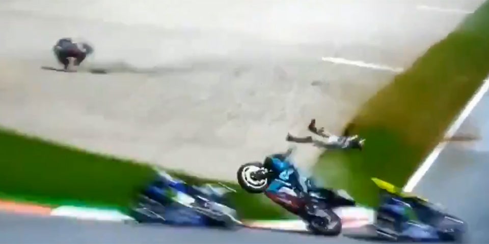 Las motos de Morbidelli y de Zarco, a centímetros de impactar con Valentino Rossi. Milagro. pic.twitter.com/Fh1Co1IddB