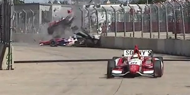 Franchitti hatte mit seinem Rennwagen in der letzten Runde im Kampf um Platz acht den vor ihm fahrenden Boliden des ehemaligen Formel-1-Piloten Takuma Sato berührt. Der viermalige IndyCar-Champion aus Schottland hob ab und krachte mit voller Wucht in die Fangzäune, ehe er mit seinem zerstörten Wagen wieder aufschlug.