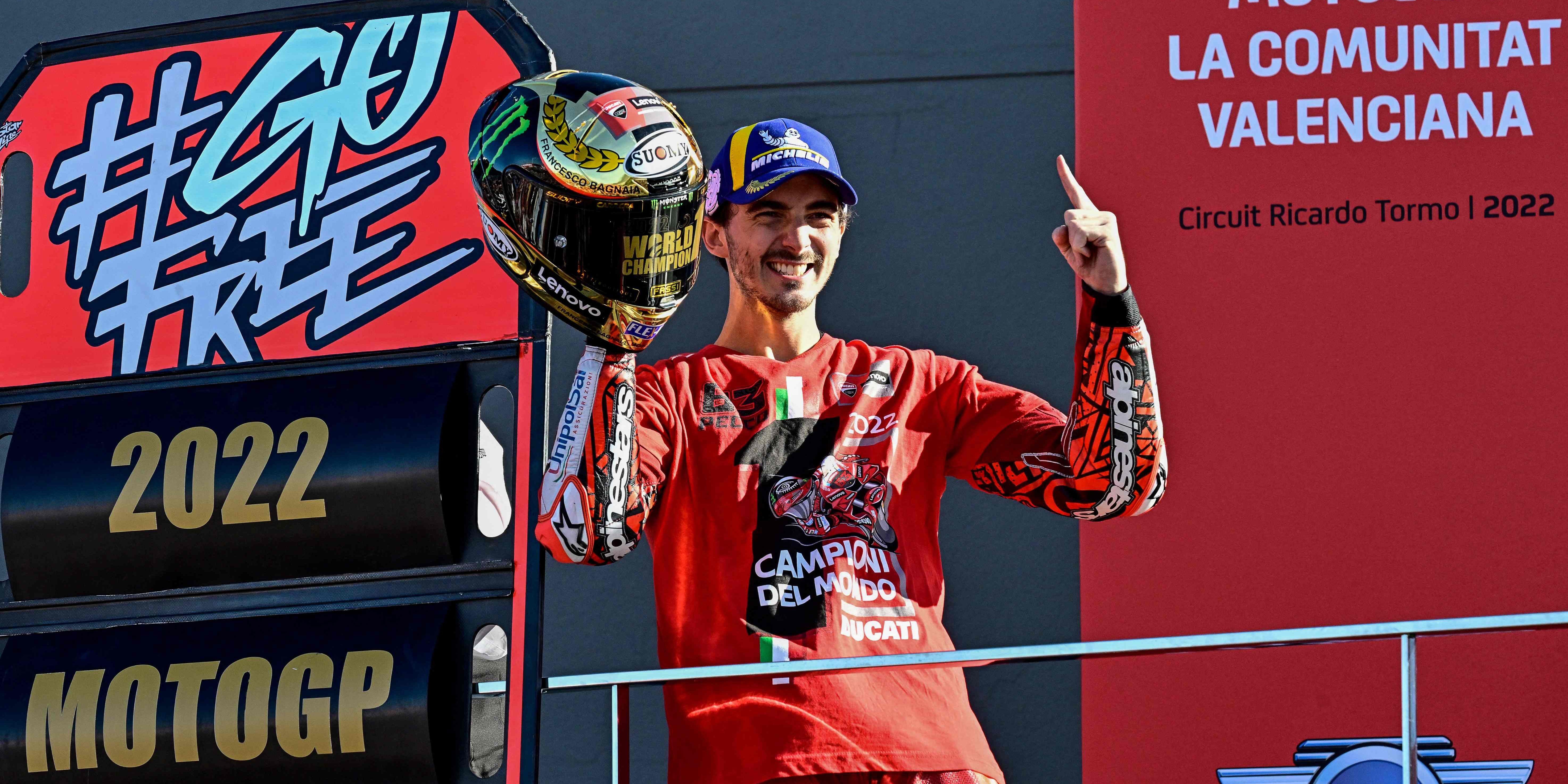Der 25-jährige Bagnaia, der vergangenes Jahr auf dem Circuit Ricardo Tormo gewonnen hatte, ist der erste italienische MotoGP-Champion seit Valentino Rossi 2009 bzw. der erste für Ducati seit 2007. Für ihn ist es der zweite WM-Titel nach jenem in der Moto2-Klasse 2018. "Das fühlt sich gut an, es ist der größte Tag meines Lebens. Ich wollte unter die ersten fünf kommen, aber ich habe dann richtig zu kämpfen gehabt. Aber wir sind Weltmeister, das ist ein großartiger Tag, ich bin sehr glücklich", sagte Bagnaia auf Servus TV.