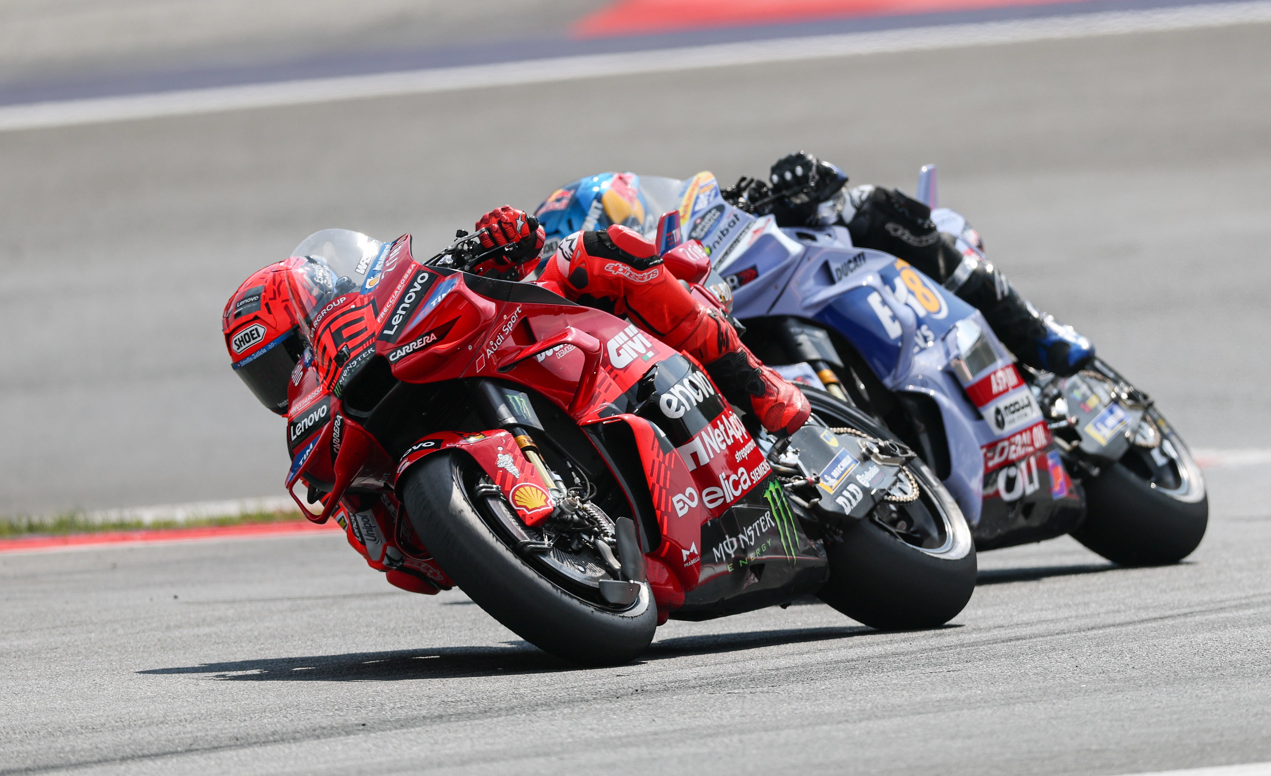Der italienische Aprilia-Pilot Marco Bezzecchi hat vor drei Ducati-Fahrern das MotoGP-Qualifying für den Grand Prix von Österreich in Spielberg gewonnen. Topfavorit Marc Marquez stürzte am Samstag in der finalen Phase und kam nicht über Startplatz vier hinaus. Im anschließenden Sprint war der Saisondominator auch aus der zweiten Reihe losfahrend aber wieder ein Klasse für sich. Er gewann wie heuer schon so oft vor seinem Bruder Alex. Dritter wurde KTM-Youngster Pedro Acosta.