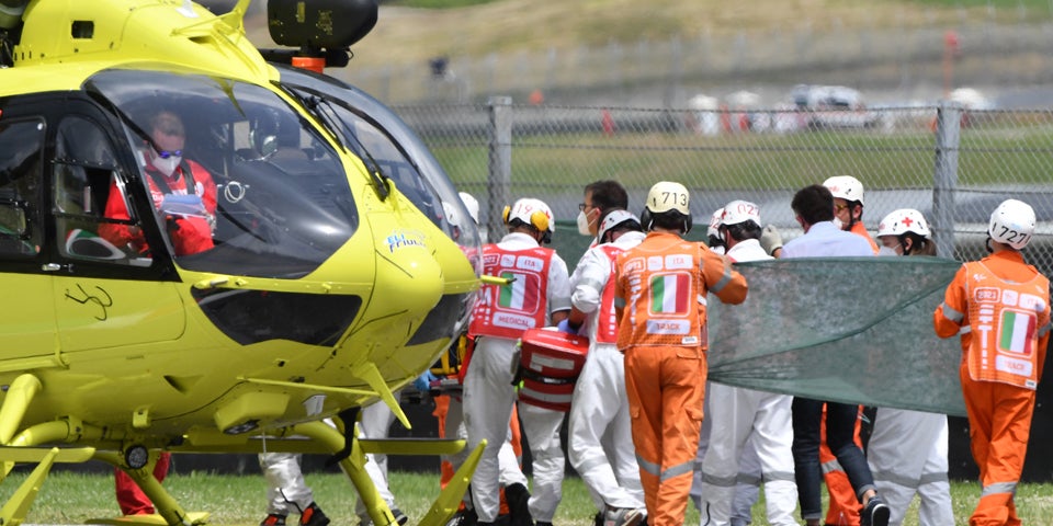 #Moto3 #Mugello Dupasquier being taken to the helicopter so seems stable enough to transport. He'll be taken to the hospital in Florence for "further examination". We hope we can share some good news later on. #MsportXtra pic.twitter.com/nRgH2ASM8S