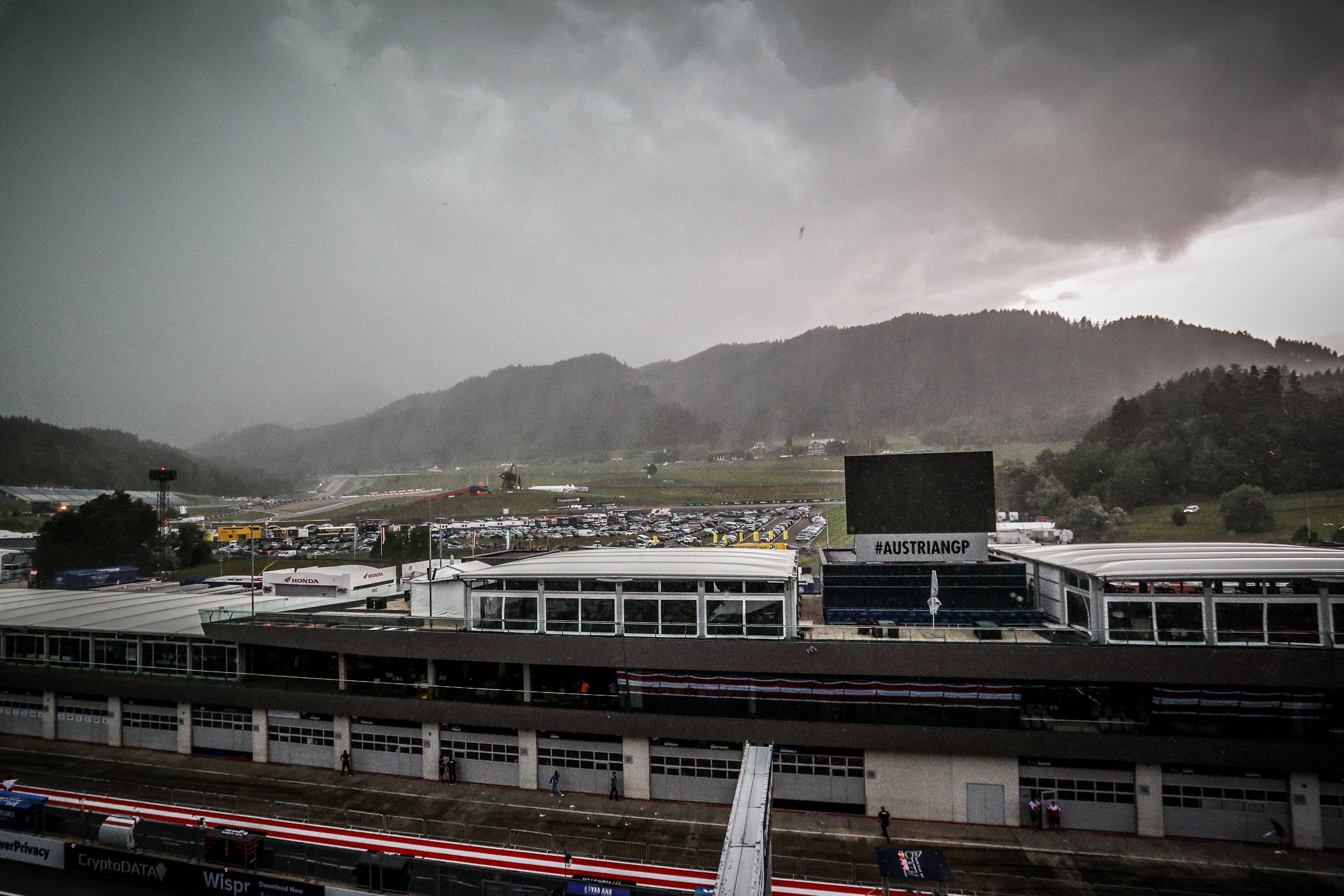 Ein heftiges Unwetter mit Regen und Sturm hat am Donnerstag beim Auftakt zum Motorrad-GP von Österreich in Spielberg für einen offenbar großräumigen Stromausfall gesorgt.