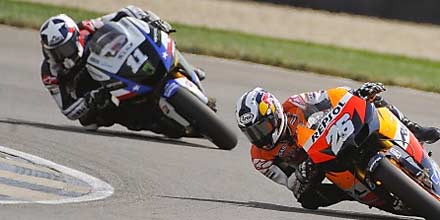 Der Spanier Daniel Pedrosa hat wie im Vorjahr das Rennen der "Königsklasse" MotoGP beim Motorrad-Weltmeisterschaftslauf von Indianapolis gewonnen. Der WM-Zweite sicherte sich am Sonntag auf Honda einen ungefährdeten Sieg. Dabei verwies er den US-Lokalmatadoren Ben Spies auf Rang zwei. Dritter wurde WM-Spitzenreiter Jorge Lorenzo aus Spanien, der noch immer beruhigende 68 Punkte Vorsprung auf Pedrosa hat.