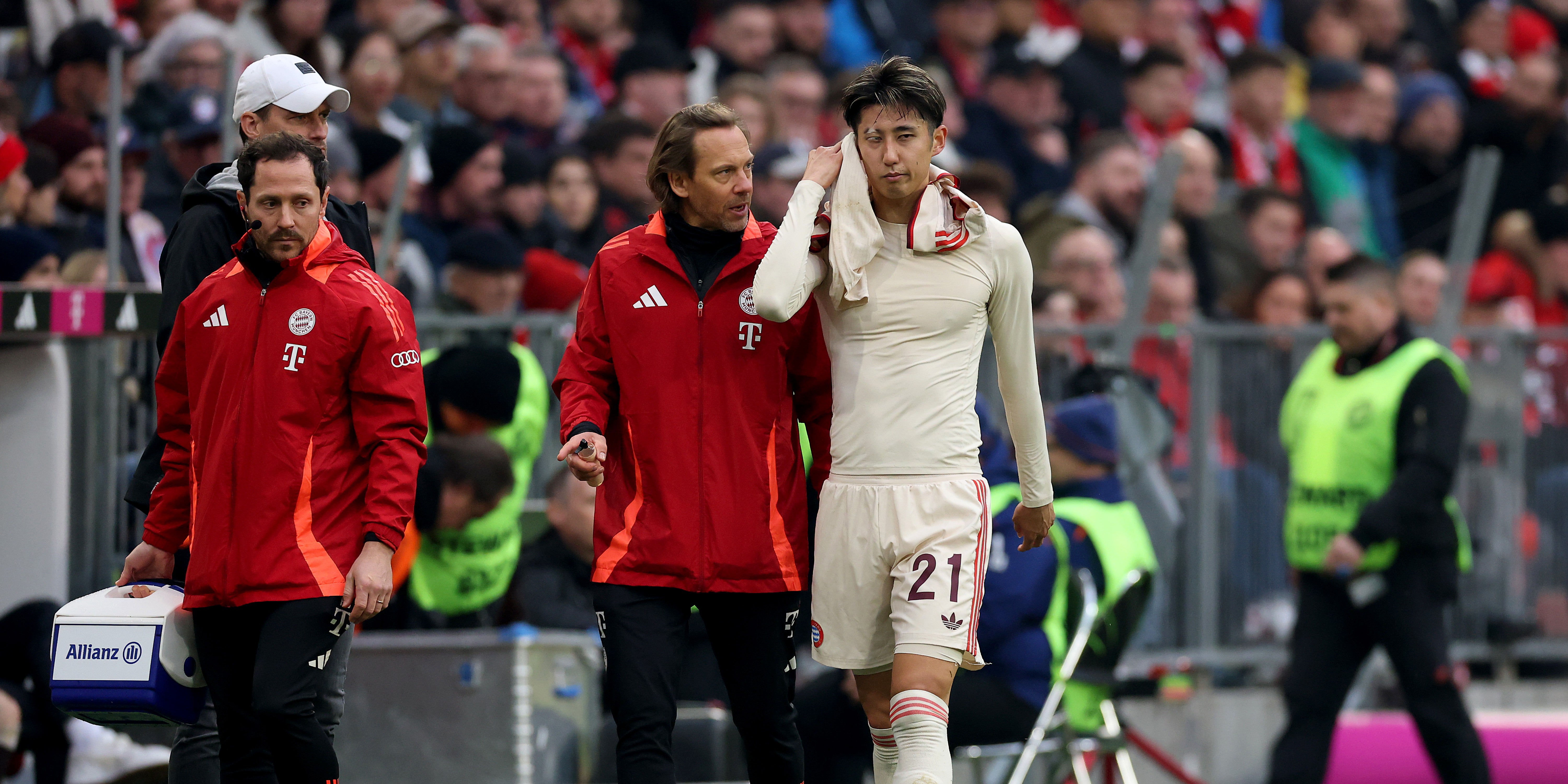 Der Japaner Hiroki Ito zog sich am Samstag beim 3:2-Heimsieg gegen den FC St. Pauli einen neuerlichen Mittelfußbruch zu. Ein solcher hatte den 25-Jährigen bereits für mehr als die erste Saisonhälfte außer Gefecht gesetzt. Mit Alphonso Davies und Dayot Upamecano fehlen den Bayern zwei weitere Verteidiger bis nach Saisonende verletzt.