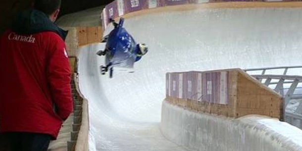 Schrecksekunde für das brasilianische Team im Zweierbob der Damen! Im ersten Trainingslauf verloren Fabian Santos und ihre Partnerin in Kurve 11 die Kontrolle über ihren Schlitten. Der Bob flog aus der Kurve, kippte um und schlittere kopfüber den Eiskanal hinunter.