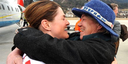 Einen kleinen Empfang hat es am Sonntagvormittag am Innsbrucker Flughafen für Elisabeth Görgl gegeben. Begleitet von ihren Trainern Herbert Mandl und Jürgen Kriechbaum kam die gebürtige Steirerin wieder in ihrem Heimatort Innsbruck an. Mit dabei hatte die stolze ÖSV-Fahrerin natürlich ihre zwei Bronzemedaillen, die sie in der Abfahrt und im Riesentorlauf bei den Olympischen Spielen in Vancouver geholt hatte.