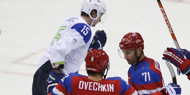 Nach einem Blitzstart mit zwei schnellen Toren durch Alexander Owetschkin und Jewgeni Malkin führten die russischen Cracks bereits nach vier Minuten komfortabel mit 2:0. Am Ende war das 5:2 (2:0,1:2,2:0) gegen Slowenien aber wegen defensiver Wackler nicht mehr als ein Arbeitssieg. Die Angriffsreihen im Team von Nationaltrainer Sinetula Biljaletdinow hingegen verzückten mit ihrer spielerischen Klasse bereits einige Male die rund 11.654 Zuschauer im ausverkauften "Bolschoi"-Dom von Sotschi.