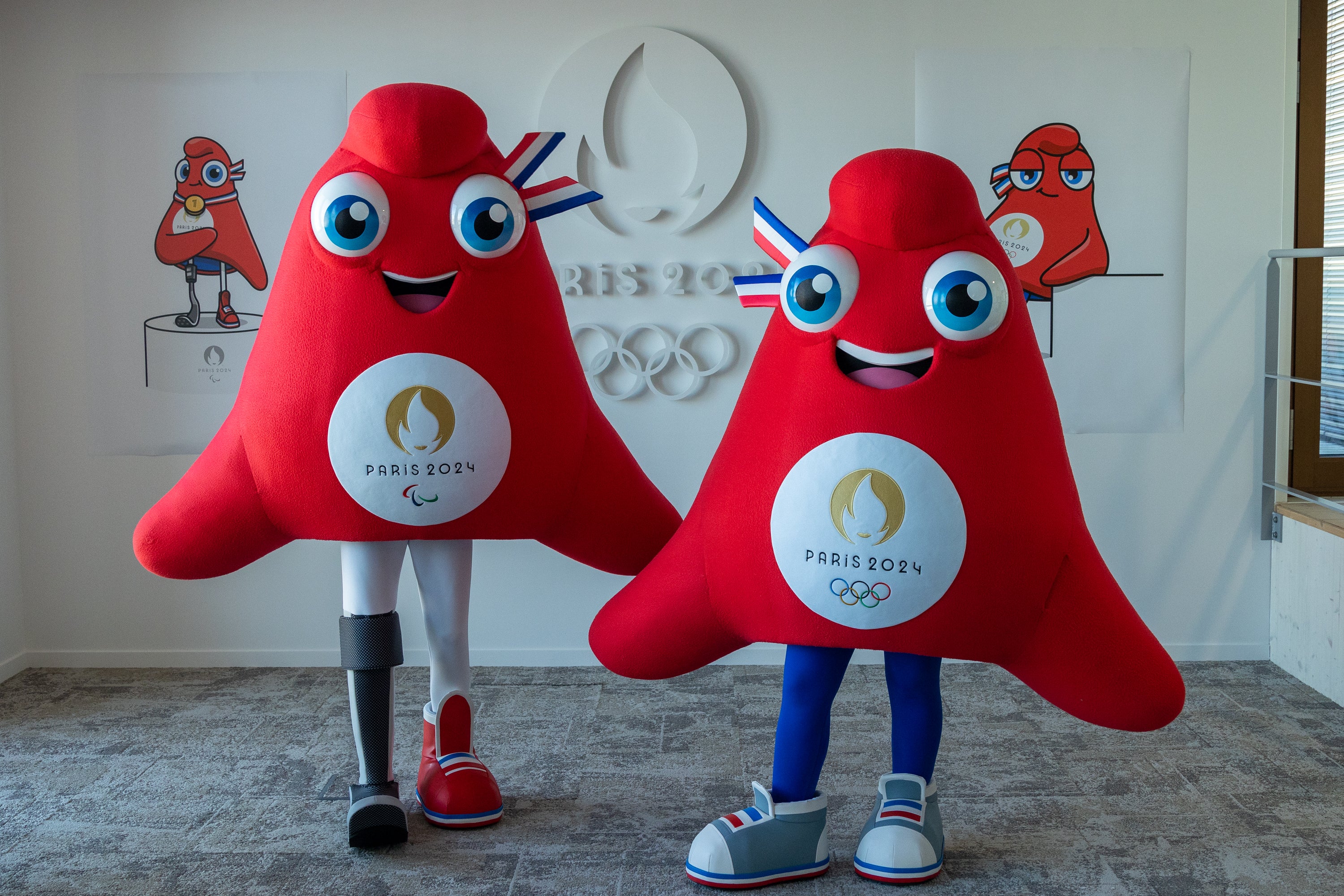 Die beiden "Phryger" genannten Maskottchen haben blaue Augen und an einem Auge Wimpern in den französischen Nationalfarben. Während eines der Maskottchen blaue Beine hat und Sportschuhe trägt, ist das andere mit einer Beinprothese ausgestattet, wie manche Teilnehmer der Paralympischen Spiele sie haben. Ein erstes Geschäft mit Fan-Artikeln soll noch in dieser Woche im Pariser Einkaufszentrum Les Halles öffnen.