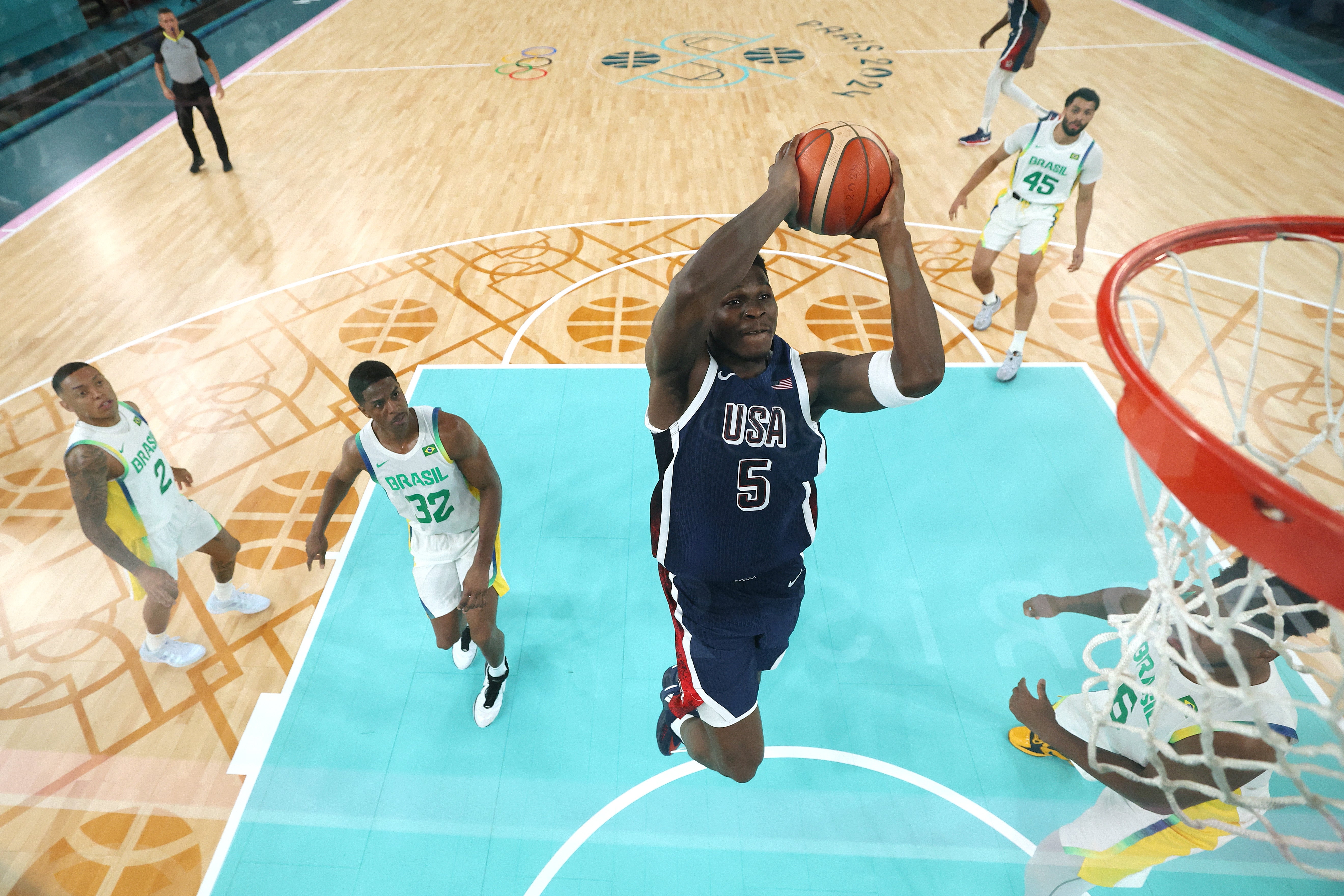 Angeführt von Devin Booker (18 Punkte) und Anthony Edwards (17) feierte die Startruppe am Dienstagabend einen klaren 122:87 (63:36)-Erfolg über Brasilien und zog völlig ungefährdet ins Semifinale ein. Die USA treffen nun auf Serbien, das Australien erst in der Verlängerung mit 95:90 ausgeschaltet hatte.