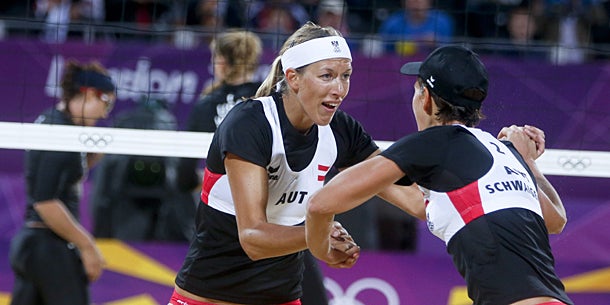 Die Österreicherinnen Doris und Stefanie Schwaiger treffen am Sonntag im Viertelfinale des olympischen Beach-Volleyball-Turniers in London auf die als Nummer zwei gesetzten Zhang Xi/Xue Chen. Die Mitfavoritinnen aus China fertigten die russischen Klagenfurt-Siegerinnen Jekaterina Chomjakowa/Jewgenia Ukolowa am Samstagvormittag im Achtelfinale in lediglich 30 Minuten mit 2:0 (12,11) ab.