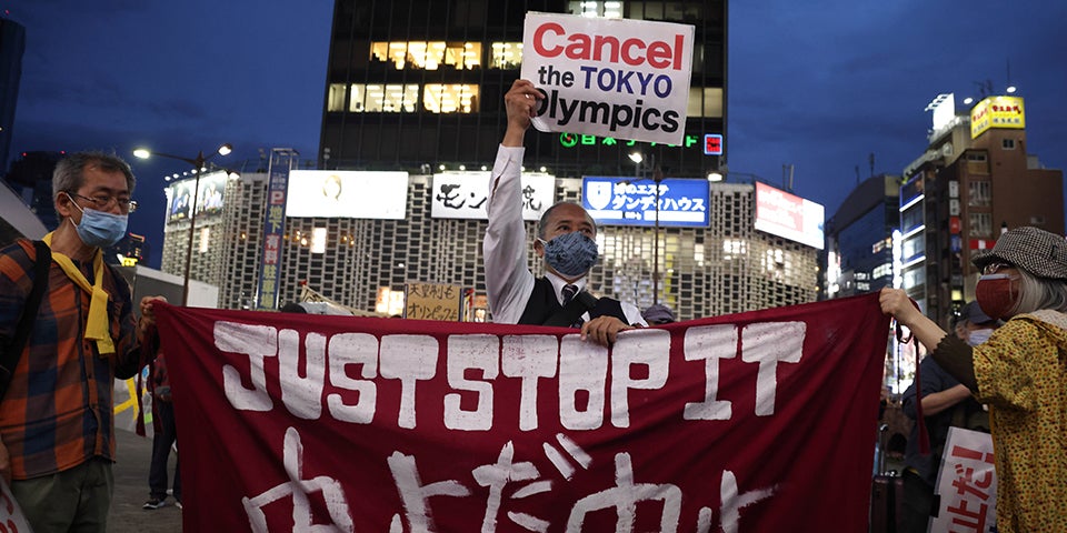 ANTI-STIMMUNG: Die Umfragen in Japan ergeben seit Monaten stabil eine überwiegende Ablehnung der Sommerspiele. Im Mai unterschrieben mehr als 350 000 Japaner eine Petition gegen Olympia. Rund 10.000 freiwillige Helfer zogen bereits ihre Bereitschaft zum Einsatz bei den Spielen zurück. Auch eine Reihe von Städten, die als Trainingsquartiere eingeplant waren, hat sich abgemeldet. Derzeit wirkt es so, als finde Olympia gegen den Willen der Gastgeber statt.