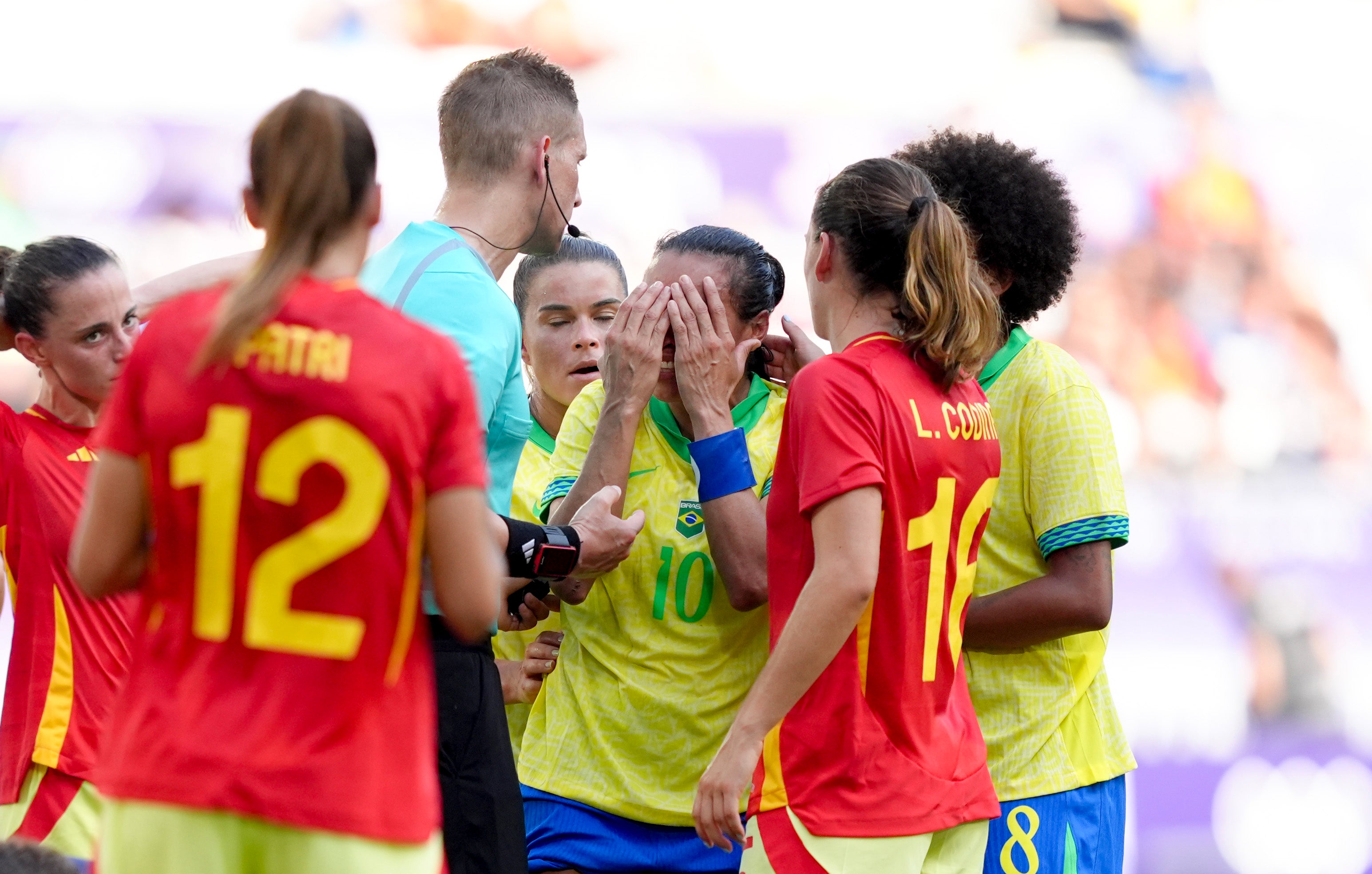 Die Selecao-Legende Marta flog gegen die Spanierinnen unmittelbar vor der Pause wegen Foulspiels mit Rot vom Platz. Für die nun gesperrte 38-jährige Starspielerin, die in Tränen ausbrach, könnte es nach ihrer Team-Rücktrittsankündigung das letzte Match auf internationaler Bühne gewesen sein. Die Südamerikanerinnen stiegen aber als eine der zwei besten Gruppen-Dritten auf und treffen nun auf die französischen Gastgeberinnen.