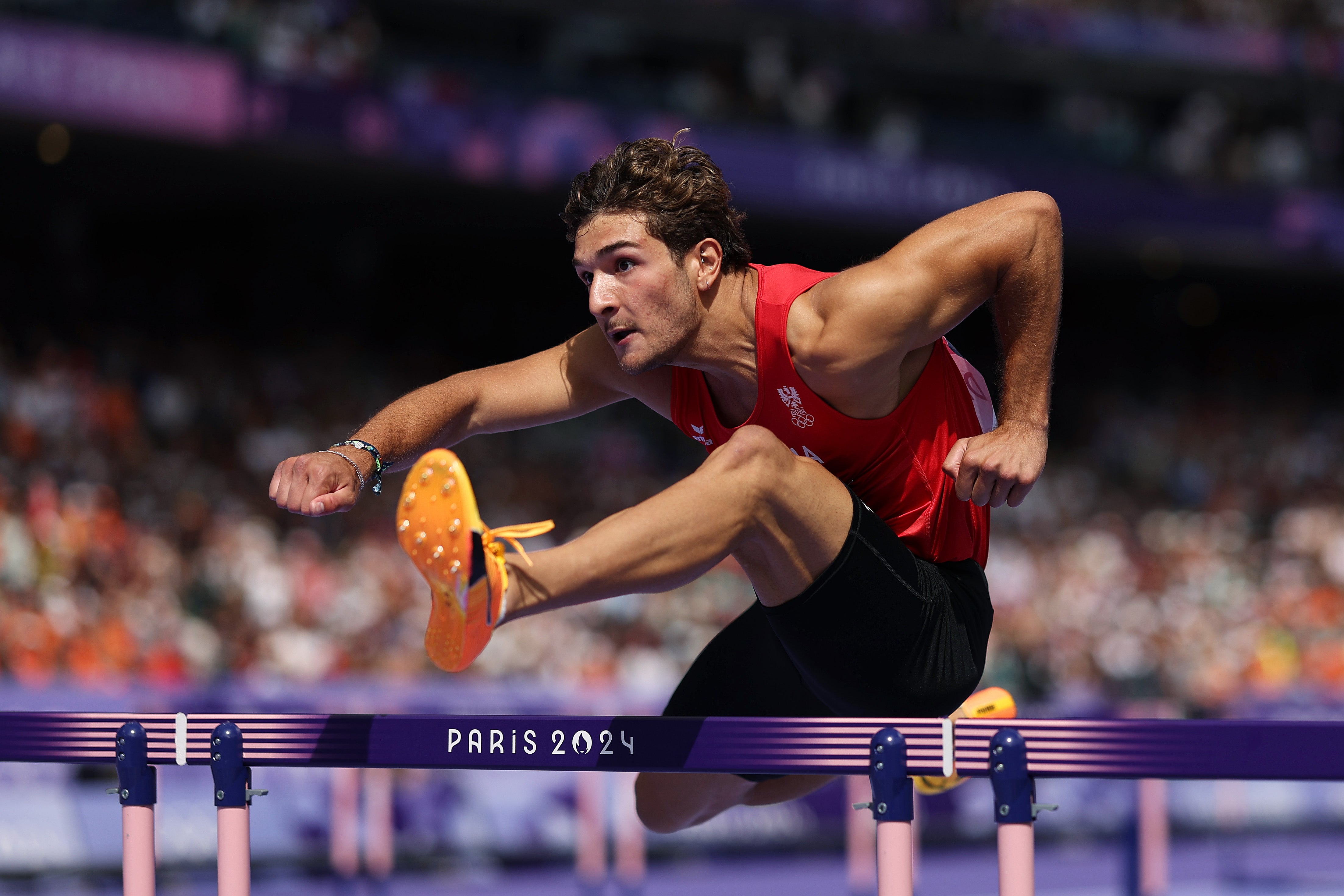 Der Steirer kam im Stade de France in seinem Lauf in 13,56 Sek. an die vierte Stelle, nur die jeweils besten zwei stiegen in das Semifinale der Top 24 am Mittwochabend auf. Der 20-Jährige zeigte als Jüngster des Feldes und in seinem ersten Jahr über die Erwachsenenhürden eine gute Leistung.