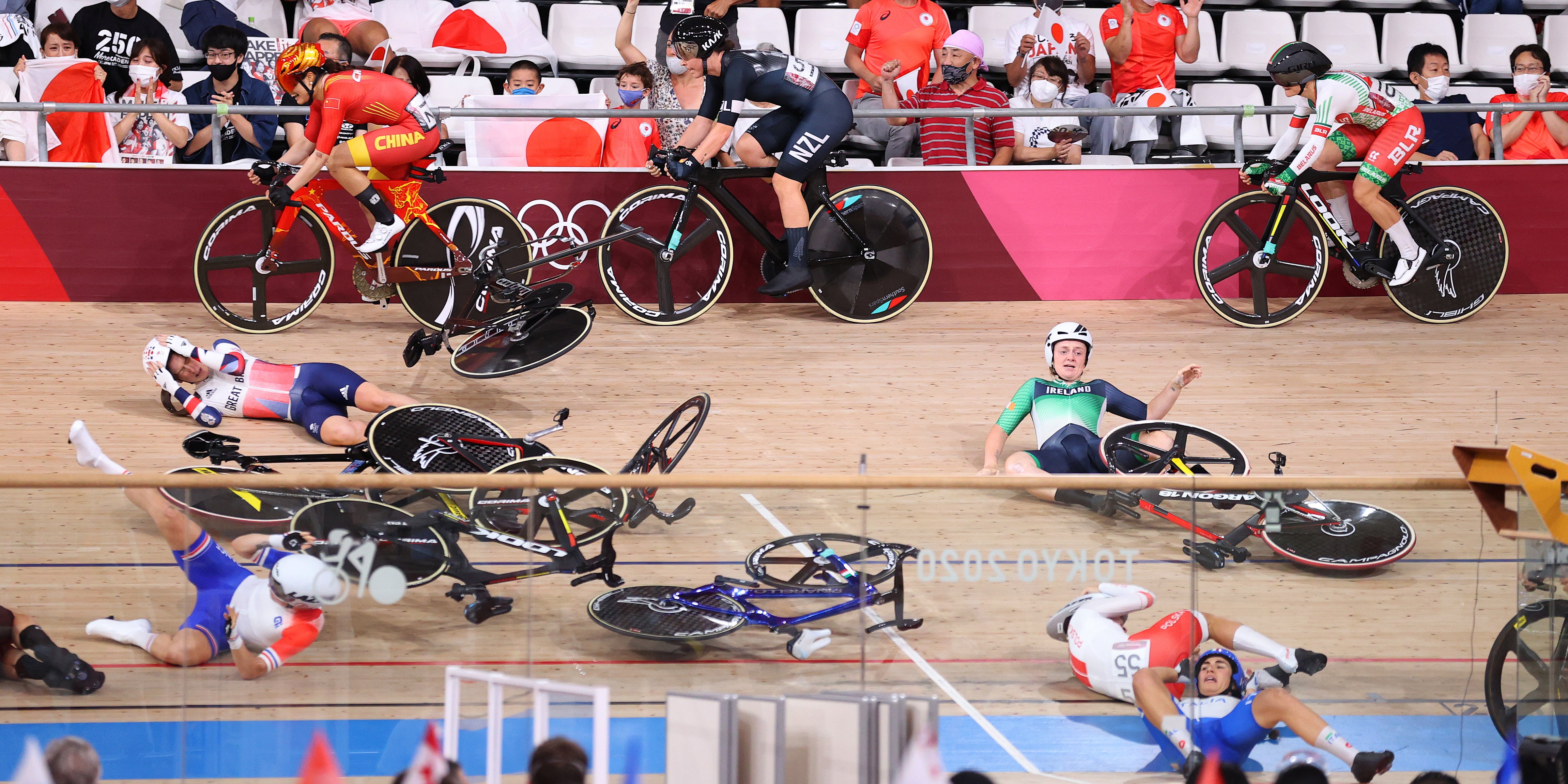The Women’s omnium scratch race was wild. The Irish rider went down in the big crash and the Italian rider literally got ran over ???? #Tokyo2020 pic.twitter.com/7glupSyiLu