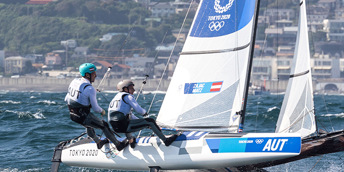 Bestes österreichisches Team in der olympischen Segelregatta vor Enoshima sind nach den Wettfahrten am Donnerstag Thomas Zajac/Barbara Matz.