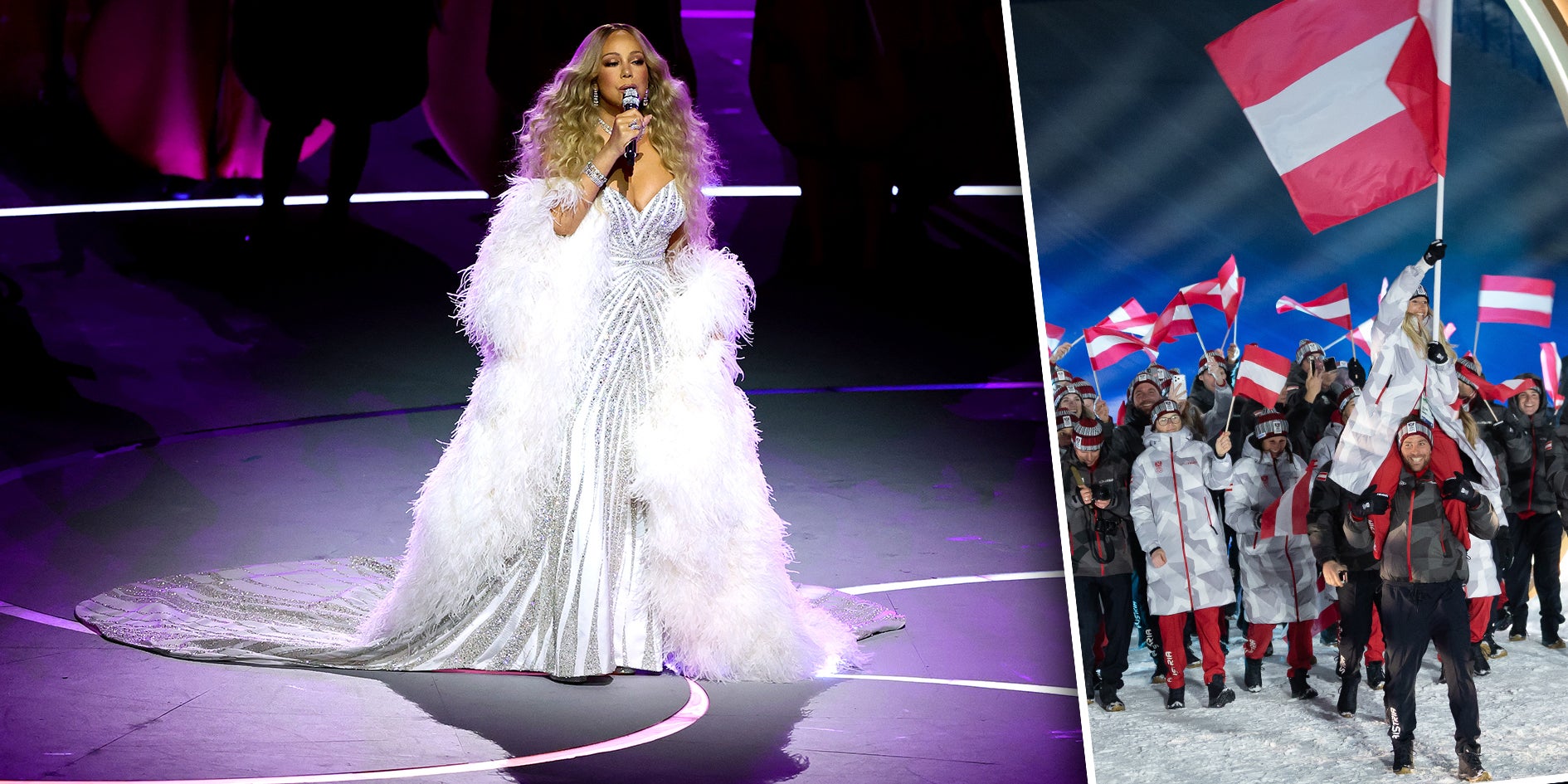 Das erste Highlight der Show war Mariah Carey, die im besten Italienisch den Klassiker "Volare Nel blu, dipinto di blu" zum Besten gab. Aufgrund der weiten Wege zwischen den Spielstätten wurden die Fahnen in allen Orten gezeigt. In Livigno schwenkten unsere Snowboard-Stars Anna Gasser und Benjamin Karl die große rot-weiß-rote Fahne.