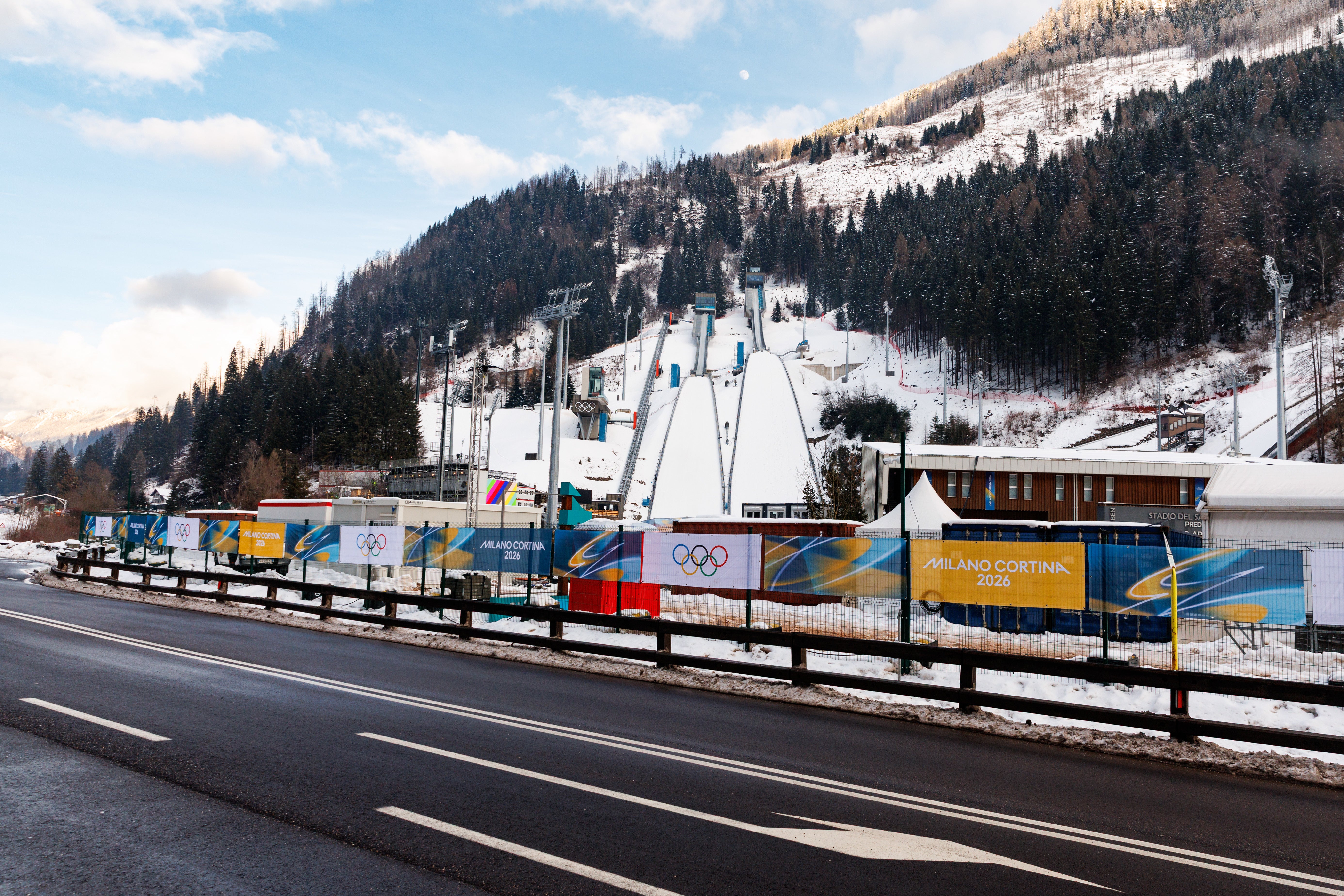 Der Olympia-Parkplatz zwischen den Ortschaften Preddazo und Moena kann sowohl für Busse als auch für Pkw genutzt werden. In Predazzo fand am Samstagabend das Skispringen von der Großschanze statt. Die Winterspiele mit Mailand und Cortina d'Ampezzo als offiziellen Gastgeberstädten dauern noch bis kommenden Sonntag. Vor allem in kleineren Austragungsorten wie Predazzo und Antholz wurden dazu Liegenschaften angemietet, um den vielen Besuchern von außerhalb Parkmöglichkeiten zu bieten.