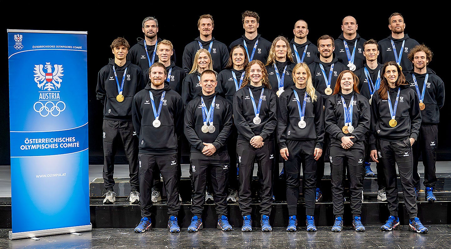 Alle anwesenden Medaillengewinner für ihre Leistungen vom ÖOC belohnt: Für jede Goldmedaille gab‘s ein Golddukaten-Set im Wert von 20.000 Euro. Silber war unserem Olympia-Comité 17.000 Euro wert und Bronze 14.000. Damit kommt Kombinierer Johannes Lamparter auf Münzen im Wert von insgesamt 48.000 Euro.