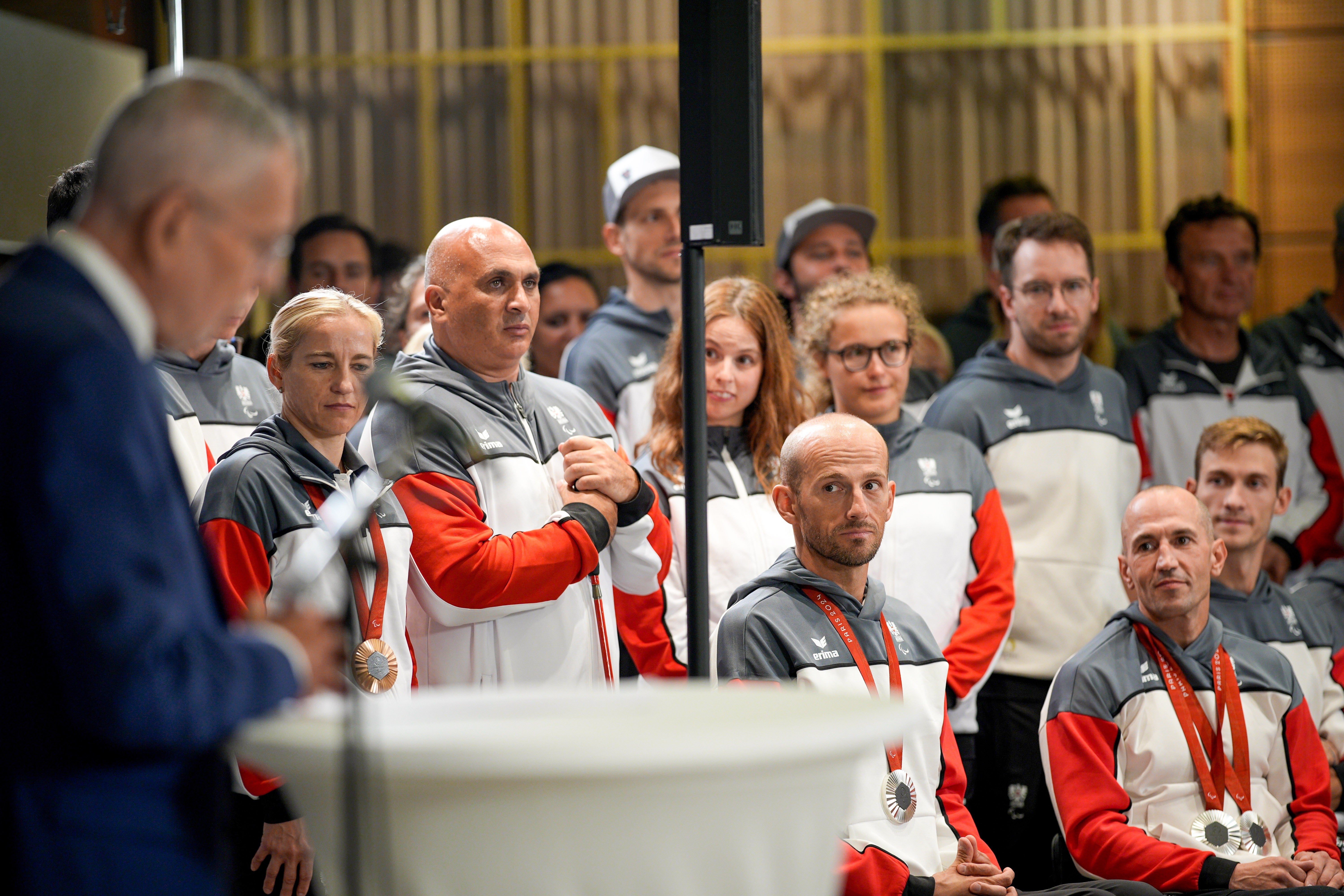 Vizekanzler und Sportminister Werner Kogler (Grüne) sowie Innenminister Gerhard Karner (ÖVP) waren als Regierungsvertreter anwesend, ebenso Sport-Austria-Präsident Hans Niessl. ÖPC-Präsidentin Maria Rauch-Kallat und -Generalsekretärin Petra Huber meinten, dass das wichtigste weitere Ziel sei, die Inklusion voranzutreiben. Frühwirth verriet, dass er noch zwei Tage vor seinem ersten Start positiv auf Corona getestet worden war. Seine mentale Stärke habe ihm dann aber zu den Medaillen verholfen. "Ich bin vielleicht in den Brunnen gefallen, aber ersoffen bin ich noch nicht", habe er sich gedacht.