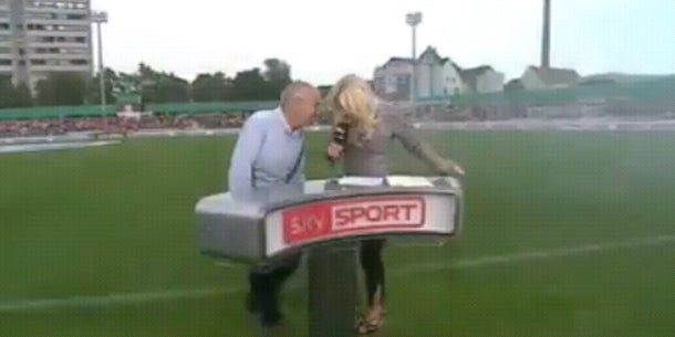 Sie hat es wirklich nicht leicht. Sky-Sportreporterin Jessica Kastrop hat in ihrer karriere schon einiges mitgemacht: Von zielsicher geschosenen Bällen, die ihr während eines Interviews auf den Hinterkopf donnern, bis hin zu unfreiwilligen Bierduschen wird sie so schnell ncihts mehr erschüttern.