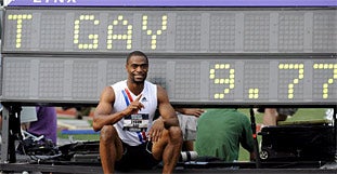 Am zweiten Tag der US-Leichtathletik-Meisterschaften in Eugene (US-Bundesstaat Oregon) haben erneut die Sprinter für herausragende Ergebnisse gesorgt. Weltmeister Tyson Gay stellte am Samstag (Ortszeit) im 100-Meter-Viertelfinale mit 9,77 Sekunden einen neuen US-Rekord auf und verpasste den erst Ende Mai aufgestellten Weltrekord des Jamaikaners Usain Bolt nur um fünf Hundertstel. Gays Zeit ist die drittschnellste, die jemals gelaufen wurde.