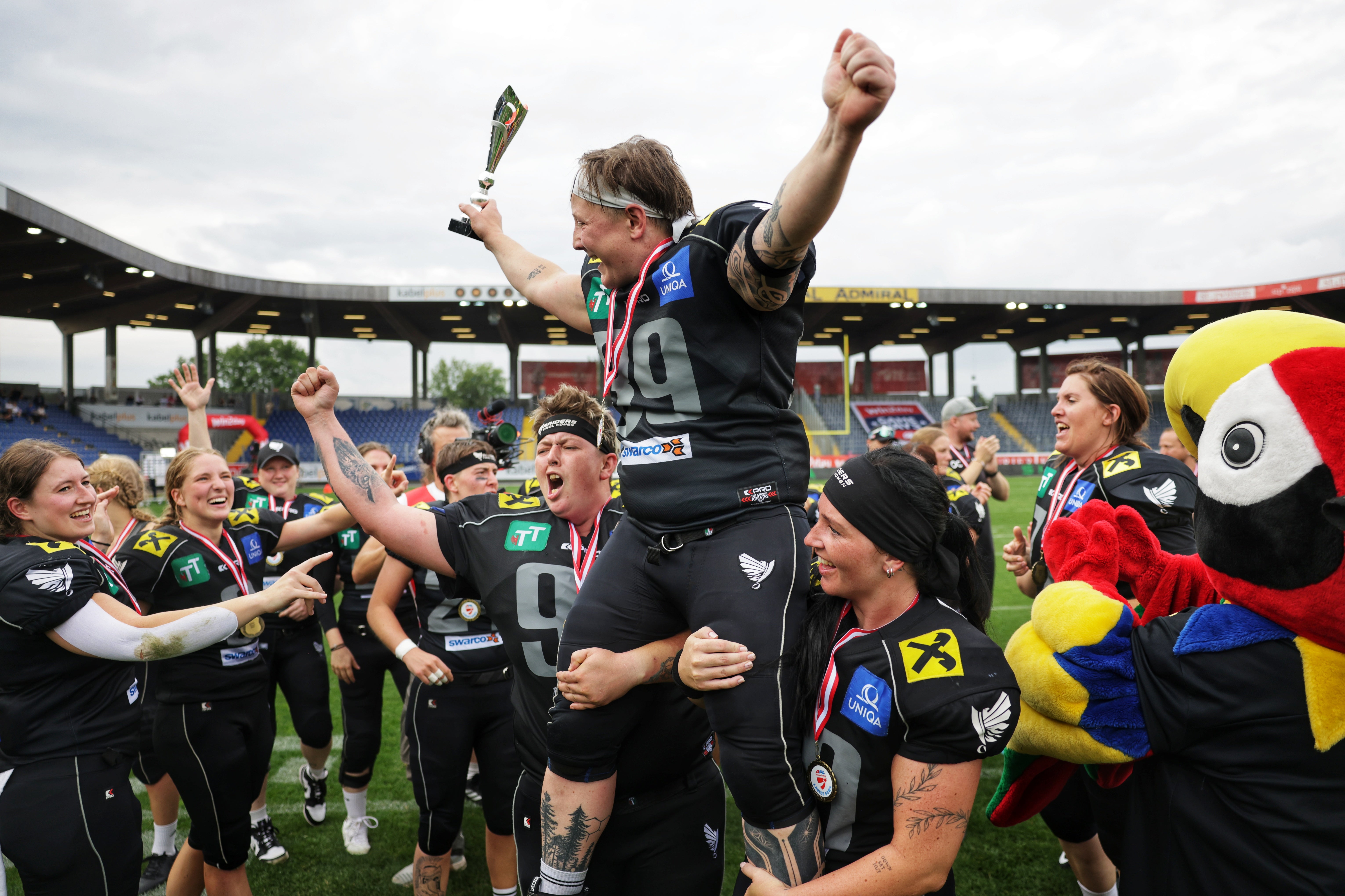 Die SG Raiders/Hammers kürt sich mit einer Machtdemonstration im Ladies Bowl gegen die Salzburg Ducks zum heimischen Football-Meister und feiern die erfolgreiche Titelverteidigung.
