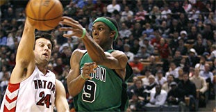 Die Boston Celtics haben am Sonntag ihren neunten Sieg in Serie eingefahren und sind damit weiterhin ungefährdet das Topteam der nordamerikanischen Basketball-Profiliga NBA. Der Rekordmeister bezwang die Toronto Raptors auswärts sicher mit 90:77 und hält damit bei einer Saisonbilanz von 20:2-Siegen. Kapitän Paul Pierce erzielte 18, Superstar Kevin Garnett 16 Punkte für die Celtics, die erneut mit starker Defense überzeugten.