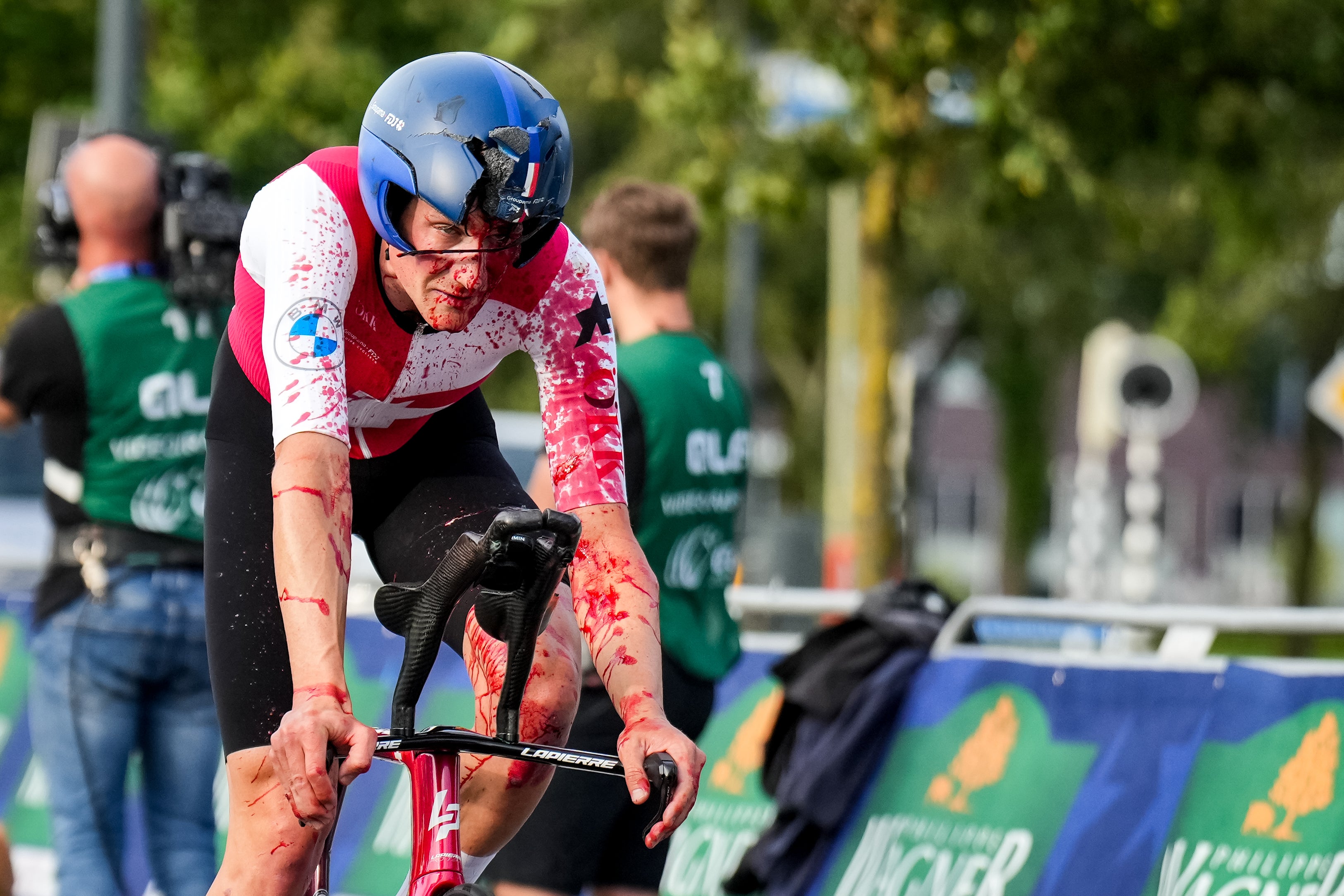 Die Bilder schocken die Radsport-Fans weltweit. Blutüberströmt, mit zerbrochenem Helm kämpfte sich der Schweizer Stefan Küng (29) im niederländischen Emmen als Elfter ins EM-Zeitfahr-Ziel.