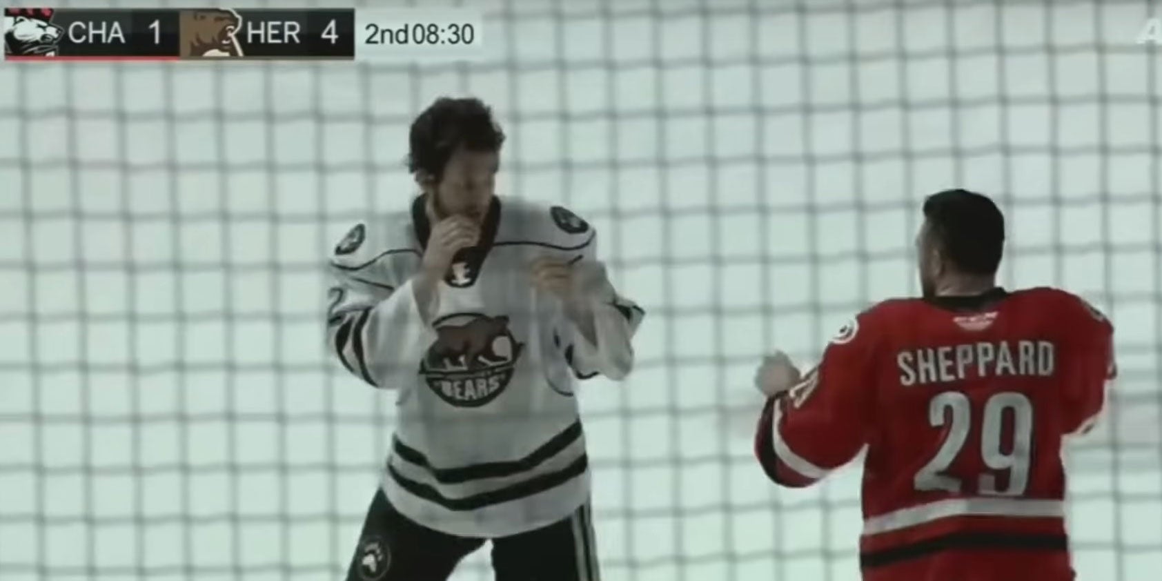 Beim Spiel der Hershy Bears gegen die Charlotte Checkers kommt es zum wilden Box-Duell.