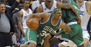 Rekordmeister Boston Celtics hat in der NBA mit einem 90:80 auswärts gegen Orlando Magic am Donnerstag seinen neuerlichen Erfolgslauf auf sieben Siege in Serie ausgebaut. Der amtierende Champion zog damit an der Spitze der Eastern Conference mit den Cleveland Cavaliers gleich, die "Cavs" haben jedoch fünf Partien weniger bestritten. Kapitän Paul Pierce war mit 27 Punkten und 10 Rebounds der auffälligste Spieler der Celtics. Aufseiten von Orlando enttäuschte Center Dwight Howard mit nur elf Punkten.