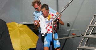 Nach seinem Kampf auf L'Alpe d'Huez rang Bernhard Kohl minutenlang nach Atem. Dann kam er zu den wartenden Reportern.