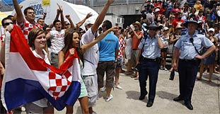 Am Mittwoch hatten sich beim Spiel des Kroaten Marin Cilic und Janko Tipsarevic aus Serbien zwei Fans im Melbourne Park eine Schlägerei geliefert. Schon im vergangenen Jahr war es während der Partie zwischen dem Chilenen Fernando Gonzalez und dem Griechen Konstantinos Economidis auf der Tribüne der Margaret Court Arena zu Auseinandersetzungen zwischen einer kleinen Gruppe griechischer Fans und Polizisten gekommen, in dessen Verlauf die Beamten auch Pfefferspray einsetzten. Vor zwei Jahren war es bei der als "Happy Slam" bekannten Veranstaltung in Melbourne am ersten Turniertag zu Randalen zwischen serbischen, kroatischen und griechischen Fans gekommen - mit 150 Platzverweisen, aber ohne Festnahmen.
