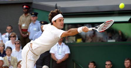 Ein episches Duell zweier Aufschlagkanonen hat am Sonntag nach 4:16 Stunden mit einem historischen Triumph von Roger Federer geendet. Der Schweizer setzte sich im Endspiel des Rasen-Grand-Slam-Turniers von Wimbledon gegen den US-Amerikaner Andy Roddick mit 5:7,7:6(6),7:6(5),3:6,16:14 durch und ist nun mit diesem 15. Major-Sieg alleiniger Rekordhalter vor Pete Sampras (14), der Federer von der Royal Box aus applaudierte.