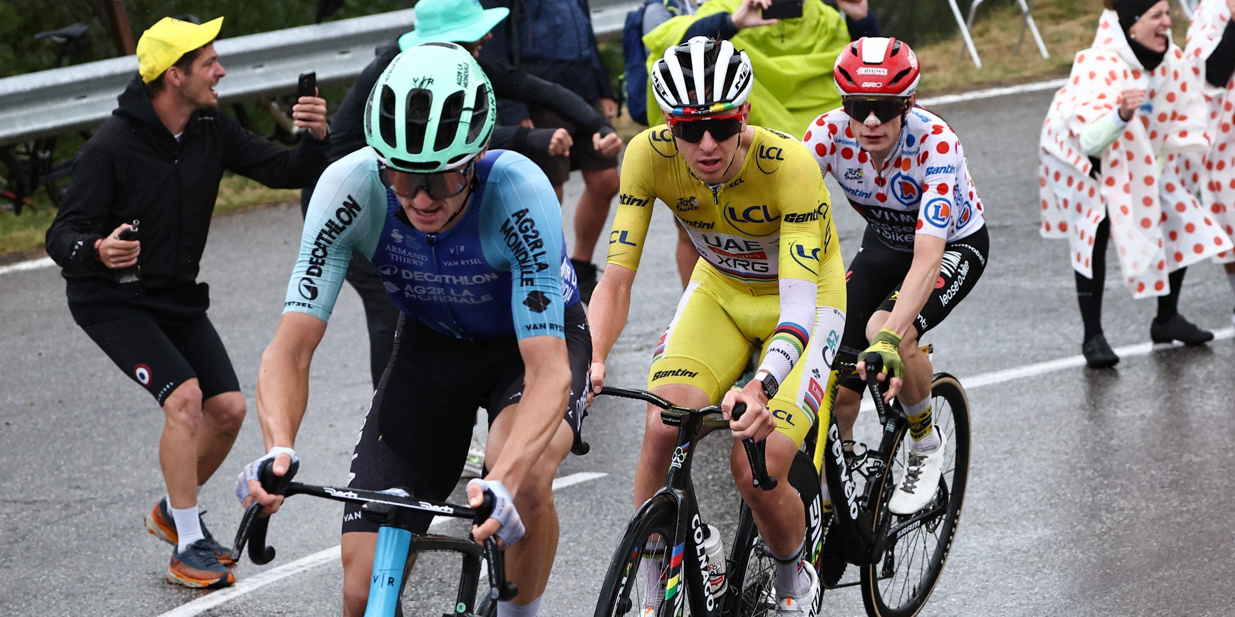 Im Dauerregen auf den letzten 19 km rauf zum Wintersportort La Plagne konnte Gall bei der letzten Tempoverschärfung von Pogacar nicht mehr mitgehen. Der 27-Jährige hatte sich davor stets in der Gruppe um Pogacar aufgehalten und mit seinen Decathlon-Teamkollegen selbst attackiert. Der vor seinem vierten Tour-Triumph stehende Slowene machte mit Vingegaard im Schlepptau am Ende Jagd auf den entflohenen Arensman. Der 25-Jährige rettete auf der letzten Alpen-Etappe seinen Vorsprung aber ins Ziel.