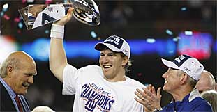 Drei Minuten vor Schluss hatte es nach einem Touchdown der Patriots noch danach ausgesehen, als ob sich der Favorit durchsetzen würde. Aber Manning führte seine Giants im Finish über das ganze Feld zu den entscheidenden Punkten. Vor einem Jahr hatte Peyton Manning, Elis älterer Bruder, als Quarterback mit den Indianapolis Colts ebenfalls die Super Bowl und die MVP-Auszeichnung gewonnen. "Peyton im Vorjahr gewinnen zu sehen und jetzt mit den Giants erfolgreich zu sein, ist einfach unglaublich. Ich bin sehr stolz auf mein Team", meinte der in der Saison oft kritisierte 27-jährige Eli Manning. In den Play-offs war Manning dann aber zur Hochform aufgelaufen und hatte sein Team zu vier Auswärtserfolgen en suite geführt.