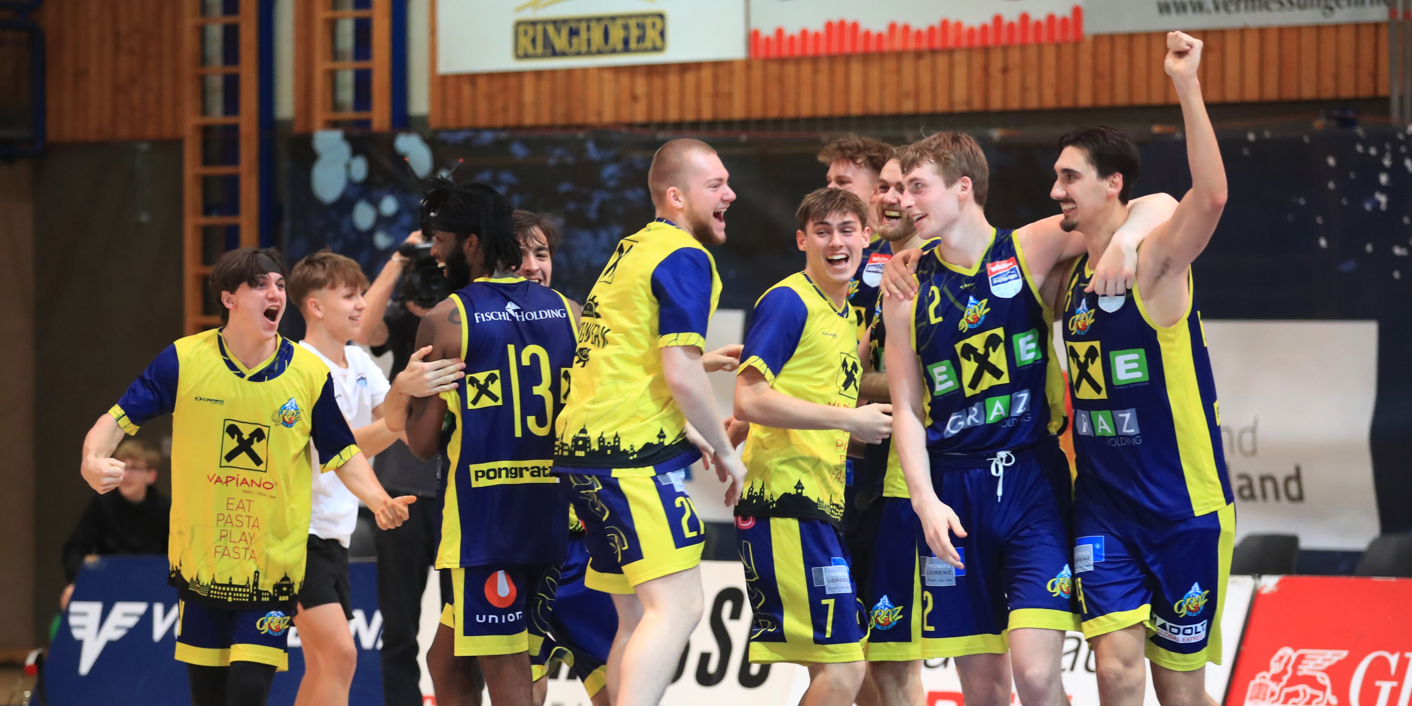 Die Wiener gaben die Partie zweimal aus der Hand. Graz machte den 18-Punkte-Rückstand aus der Halbzeit bereits im dritten Viertel wett, gewann dieses mit 32:14 und glich aus. Zweieinhalb Minuten vor Spielende sah der Favorit bei einer 90:82-Führung erneut wie der sichere Sieger aus. Die Steirer legten aber einen 10:0-Lauf auf das Parkett und drehten die Partie. Vergangenen Sonntag hatten sie sich in der Superliga in Wien noch klar mit 76:108 geschlagen geben müssen.