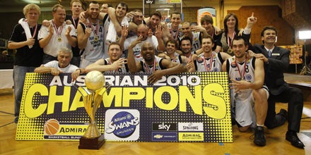 Die Swans Gmunden haben zum vierten Mal nach 2005 bis 2007 die heimische Basketball-Bundesliga der Herren gewonnen. Die Oberösterreicher feierten am Sonntagabend angeführt vom 35-jährigen "MVP" De'Teri Mayes (30 Punkte) im entscheidenden Bundesliga-Finalspiel der "best of five"-Serie einen 76:68-(35:29)-Auswärtssieg über die Fürstenfeld Panthers und fixierten damit nach dem Cup-Sieg erstmals in der Clubgeschichte das Double, das als bisher letztes Team die Traiskirchen Lions im Jahr 2000 geholt hatten.