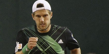 seinen Aufschlag. Nach klar gewonnenem zweiten Durchgang wackelte Melzer nur